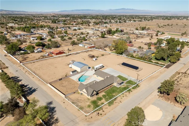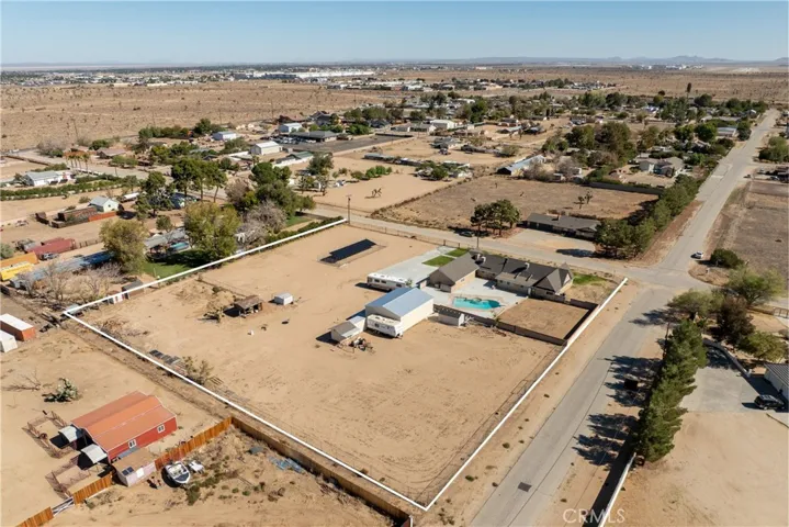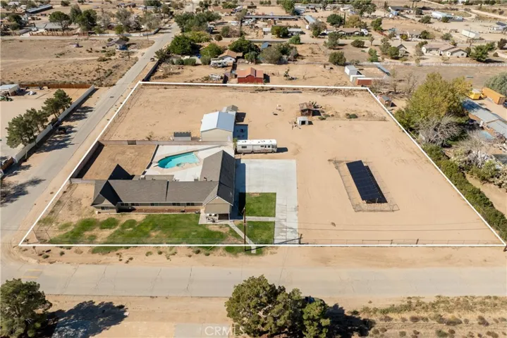 El Dorado Ranch POOL Home with large new shop/building. 2.5 Acre corner lot that is fully fenced. Large amount of solar panels ensure low electric bills! New large metal building/shop with roll up doors. Large concrete driveway to garage and shop. Additional sheds. 3 car garage. House has 5 bedrooms and 3 bathrooms. Over 2200 SF with large open living room and kitchen. Underground/basement wine cellar. Indoor laundry room. Crossed fenced with a brick wall back yard with inground pool and spa. West Palmdale close to AV Mall area and freeway access.