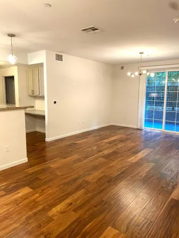 Luxury condo in the famous Peninsula Real community. This unit has a quiet setting, in the middle of the complex away from El Camino has 2 bedrooms, 2 bathrooms with a private yard/patio. Peninsula Real is a gated community with secured unground parking. This unit has 2 assigned parking spaces and a dedicated storage room. Inside the unit, you will find gleaming wood floors, top-of-line kitchen appliances, and luxurious primary suite with spa-like bath. The 2nd bedroom is just as generous in size has a hall bath to enjoy. In-unit laundry closet hosting full size side-by-side washer and dryer. This community offers mature landscaping and a sparkling pool. Monthly rent includes cold water, hot water and trash. property is virtually staged for conceptual purpose