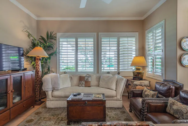 Welcome to Heritage Palms Country Club! This stunning 1,885 sq. ft. Northwood Model is a true gem, showcasing spectacular views of the lake, fairway, and surrounding desert mountains.Step inside to an open-concept floor plan designed for comfort and entertaining. The spacious living and dining areas flow seamlessly into an additional great room off the kitchen, creating the perfect setting for gatherings. The chef’s kitchen features a center island with slab granite countertops, an extended breakfast bar with generous seating, updated cabinetry, LED lighting, and stainless steel appliances, ideal for both everyday living and entertaining.The primary suite offers a luxurious retreat complete with a walk-in shower, soaking tub, walk-in closet, and additional closet space. The private guest bedroom is conveniently located near the guest bath, ensuring comfort and privacy for visitors. Relax and take in the stunning golf course, water, and mountain views from your tranquil rear patio. Experience desert living at its finest in this exceptional home located on the 5th Fairway. Additional highlights include plantation shutters, high ceilings, crown molding, ceiling fans, tile flooring, carpeting in bedrooms and luxury vinyl throughout. Peace of mind comes with a newer A/C, furnace, and water heater. Heritage Palms Country Club is a premier 55+ community offering an 18-hole championship golf course, fitness center, indoor and outdoor pools, plus active tennis and pickleball programs. Experience resort-style living at its best don’t miss this opportunity to own a beautiful home in Heritage Palms Country Club!