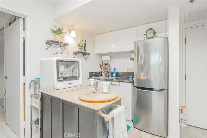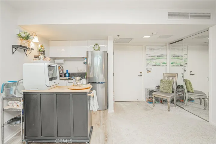 Welcome to this spectacular 2 bedroom, 2 bathroom view home at The Towers in Laguna Woods! This beautifully updated and remodeled end-unit is located on the 11th floor and offers stunning south-facing views. The home is move-in ready, featuring newly installed carpet, luxury vinyl flooring, and fresh neutral paint throughout, creating a warm and inviting atmosphere. Both bathrooms have been tastefully remodeled with stone countertops, custom tile showers, modern cabinetry, and updated flooring, providing a spa-like experience. The kitchenette includes a stainless steel LG refrigerator/freezer, cooktop, microwave, sink, and a mobile island on casters, offering additional storage and counter space. This home is designed for comfort and ease of living.
