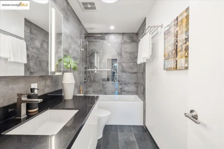 Welcome to the crown jewel of luxury – where modern sophistication meets resort-style living. Every detail of this designer upgraded home exudes comfort and class, from the spa-inspired bathrooms adorned with Italian tile and Toto bidet toilets, to the rich hardwood floors that flow throughout. Enjoy a sleek kitchen with newer appliances that make daily cooking a breeze. Entertain in style with a custom media wall, gas fireplace, and fully dimmable LED lighting that set the perfect ambiance. Comfort and efficiency unite with a state-of-the-art HVAC system featuring HEPA filtration, solar-powered sunshades, and a temperature controlled attic. The Lorex HD security system offers peace of mind. Ample parking awaits with a 2-car epoxy-coated garage, Gladiator storage, and three extra spaces for toys or guests. Conveniently located near the San Leandro Marina, Kaiser hospital, parks, schools, dining, and BART, this home delivers everyday luxury with unmatched comfort and efficiency.