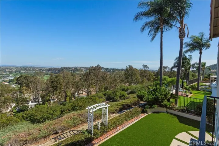 Nestled in the prestigious hillside community of Niguel Summit, this beautiful home offers an ideal blend of comfort, style, and sweeping views. Perfectly positioned on a private single loaded street, it captures panoramic vistas from Saddleback Mountain to the Pacific Ocean. Natural light fills the open layout, highlighting the soaring cathedral ceilings, fresh interior paint, and new recessed lighting throughout. The home showcases the largest floor plan in the Paragon tract, thoughtfully designed for both everyday living and easy entertaining, with a seamless flow between rooms. The main level features a convenient downstairs bedroom and full bath, perfect for guests or multi generational living, along with new flooring that extends throughout the space. Upstairs, a versatile bonus room can serve as a fifth bedroom, home office, media room, or play area. A distinctive bridge walkway connects the primary suite to the secondary bedrooms, adding architectural interest and a sense of openness. The primary suite enjoys expansive windows that frame the panoramic views, while the remodeled bathroom offers a walk in shower, soaking tub, generous walk in closet, and spa like finishes. A fully paid solar system provides energy efficiency and long term savings. Located just minutes from Monarch Beach and Ritz Carlton resorts, El Niguel Country Club, top rated schools, and world class coastal destinations including Laguna Beach and Dana Point Harbor, this Niguel Summit home combines privacy, quality, and a relaxed Southern California lifestyle.