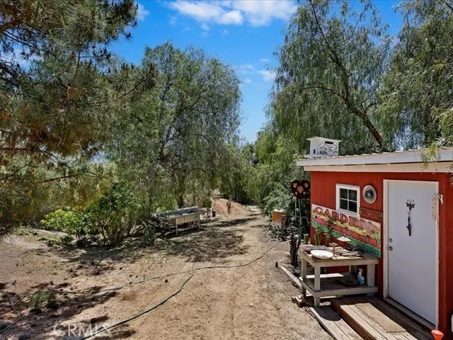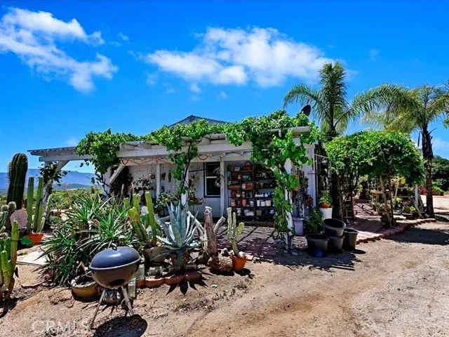 Fantastic ranch nestled 4.86 acres of beautiful usable land. 10 Minutes to Temecula. This manufactured home boasts an abundance of natural light and offers a serene escape from the hustle and bustle of city life. Spacious 4 bedrooms with 3 bath, charming kitchen that overlooks the beautiful views and wonderful birds of all kinds. Darling porch front and back. Two car garage and plenty of parking space. Brand new roof on house and garage, and new patio covers. Step outside to explore the stunning grounds adorned with beautiful gardens featuring 12 citrus trees, 12 assorted fruit trees, and 200 olive trees, creating a true oasis of tranquility. With 2 wells and solar panels, sustainability meets convenience. Wander the trails that meander through the property, or indulge your green thumb in the 2 greenhouses while utilizing the 4 Tuff sheds for all your workshop or storage needs. . Fantastic views with usable land. Enjoy diverse birdlife or simply enjoying the peaceful ambiance from the covered patios. Close to wineries, yet secluded enough to offer privacy. This home is fully fenced and cross-fenced with a security gate for added peace of mind. Miles of trails and plenty of room for horses.