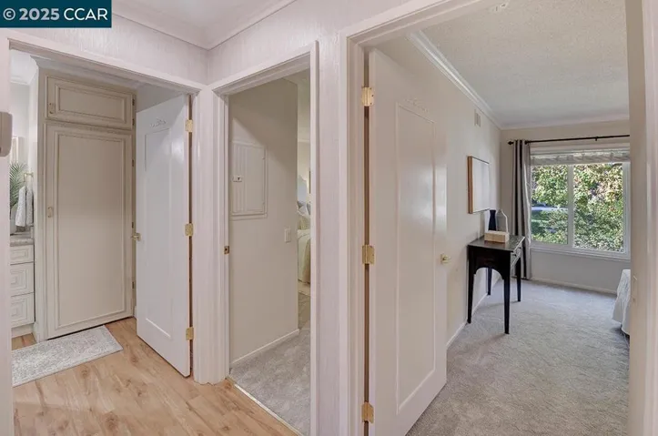 Must see Sequoia Wrap model with the best of both worlds, an enclosure that adds approximately 200sf of additional living space, and a large private deck to enjoy the lovely Rossmoor views/weather. You will love the feel of this upper end-unit. Tons of upgrades including some dual pane windows, enclosure, laundry, crown moldings, new carpet, hardware upgrades, and so much more. Kitchen has slab granite counters and tile backsplash. Extra windows in kitchen and bathroom. The remodeled bathroom has a stall shower and lots of added cabinetry for storage. This is a special home that you’ll want to see!!!
