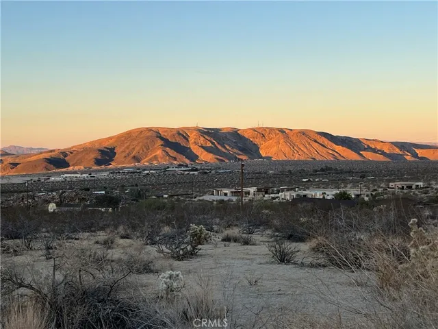 SOUTH JOSHUA TREE VIEW LOT! Discover tranquility in the hills of Panorama Heights. This stunning, 1.14-acre parcel offers a rare opportunity to build your own desert sanctuary. Set along a paved road with water and power nearby, this property combines the ease of modern convenience with the serenity of true desert living. From its elevated perch, take in sweeping, 10-mile vistas across Joshua Tree’s breathtaking landscape, an ever-changing panorama of light and shadow. A short hike to Joshua Tree National Park, this prime location invites endless exploration among the iconic boulders and winding trails. Watch quail and jackrabbits traverse the open terrain at dawn, listen for the distant call of coyotes at dusk, catch delightful glimpses of bighorn sheep in the boulders, and end each day beneath a vast canopy of stars. Located near the celebrated Kellogg House and moments from Mas o Menos coffee bar, this parcel sits in one of Joshua Tree’s most sought-after neighborhoods, where natural beauty meets creative spirit. Whether envisioned as a full-time residence or a private weekend retreat, this land offers an ideal place to enjoy desert living. Come walk the property and experience the magic for yourself!