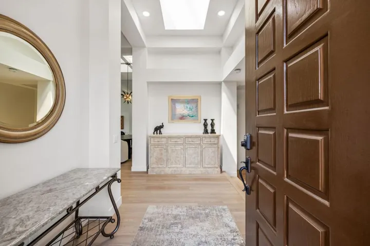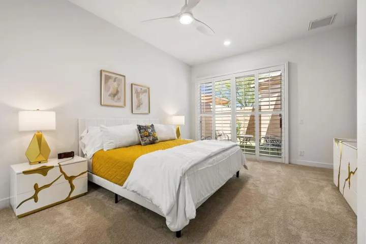 Welcome to this stunning Acacia 5 floor plan with provisional golf membership, completely remodeled from top to bottom and offering the best in modern desert living. Step inside to find all new luxury vinyl flooring throughout, a beautifully redesigned kitchen featuring granite countertops and brand-new appliances. The primary suite is a true retreat with a gorgeous walk-in shower, separate soaking tub, modern dual sinks and 2 mirrors with LED lighting. Each guest bedroom offers its own private ensuite bathroom, all fully updated with new showers, countertops, and fixtures–perfect for hosting family and friends in comfort. Outside, the front courtyard and back patio are both finished with elegant pavers, while the built-in BBQ and extended back patio create the ideal setting for entertaining. Enjoy spectacular southern mountain views overlooking the 7th hole of the Grove course, a picture-perfect backdrop for every desert evening. Let’s not forget newer A/C systems and water heater. This home blends timeless style, comfort, and an unbeatable location–truly move-in ready and waiting for you! This home is being offered furnished with very few exclusions.