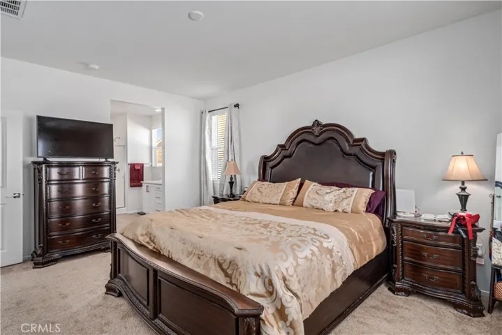 The primary suite offers a large walk-in closet, a quartz dual-sink vanity, and a walk-in shower, providing both style and functionality.