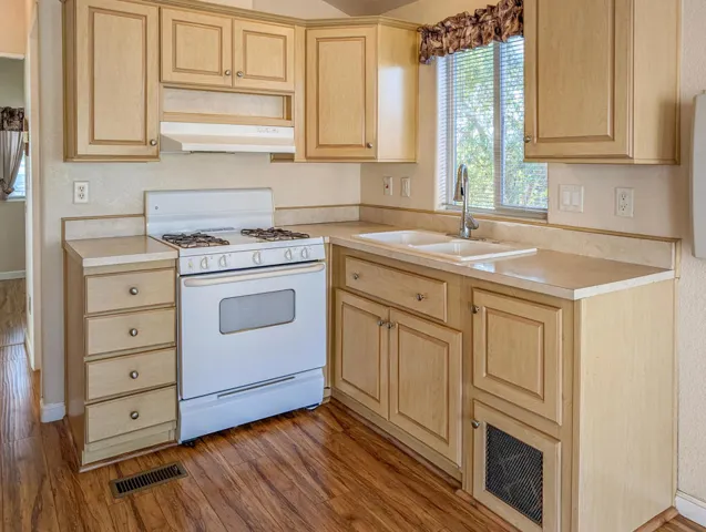 Delightful and well maintained 2-bedroom, 2-bathroom 2006 Laurel crest Park Model ~670 sq. ft. Great features in this bright and cheery home include washer/dryer, new hardwood flooring throughout, new refrigerator, new fireplace in the functional California room with vertical dual opening double pane windows for efficiency, the additional bathroom is new and complete with nice touches. Outside enjoy 2 covered and private decks perfect for entertaining, or having a barbeque, with sweeping views of the local desert hills and mountains, sports courts and driving range. Centrally located in the park you will enjoy the many amenities such as mineral hot spring pool and spas, state of the art fitness center, 9-hole golf course, 8-pickleball courts, tennis courts, laundry facilities, library, and fun organized community events. Come, make this your new home or getaway destination and enjoy this amazing place nestled in the desert at the premiere 55+ Caliente Springs Resort. Lot is not owned; space rent is $707. Easy lender financing (OAC).