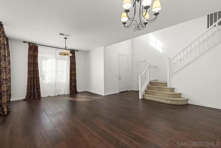 Riveting River Ranch estate in a coveted gated community featuring 5 bedrooms, 3 bathrooms with 1 full bedroom and bathroom downstairs. Exceptional hardwood floors downstairs and freshly painted interior brings you this spacious home. Upon entry you are greeted with your formal living and dining areas. Seamless flow to your chef’s kitchen featuring upgraded counters, large center island, gas range, and pantry storage all open to your informal dining area and cozy family room. Private and refreshed landscaping in your entertainer’s yard. Upstairs features your oversized primary bedroom and ensuite bathroom with dual sinks, separate tub and walk-in shower, and generous sized walk-in closet. 3 secondary bedrooms upstairs plus a loft, perfect for in home entertainment, relaxing, and more. 3 car attached tandem garage. Complex features a community pool, spa, greenbelts, playground, BBQ, and more. Just minutes to San Luis Rey River Trail, plenty of shopping in Walmart, Lowe’s, Ralph’s, restaurants, banking, and more. This is a must see!