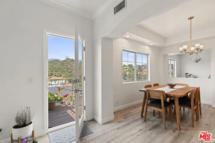 FOR LEASE Behind a gate, on a quiet street is a lovely refreshed home waiting for your enjoyment. Remodeled kitchen, updated bathrooms with each bedroom, and vaulted ceilings are just some of the features of this home. Street level is a two-car garage with direct access to the house and one bedroom with its own bathroom. Upstairs is the living, dining, powder, kitchen, breakfast area den office/tv room. Windows on the north side of the house flood the rooms with light and have panoramic views of the canyon, reservoir and Hollywood Sign. Downstairs from street level is a huge primary bedroom with its own spa tub, separate shower and wonderful sitting/office area. Also downstairs is a third bedroom with its own bathroom and walk-in closet. All levels access decks on the north side of the house. Short walk to Lake Hollywood reservoir or Beachwood Village, and walking distance to shops and restaurants on trendy Franklin Ave. A wonderful home to come home to and relax.