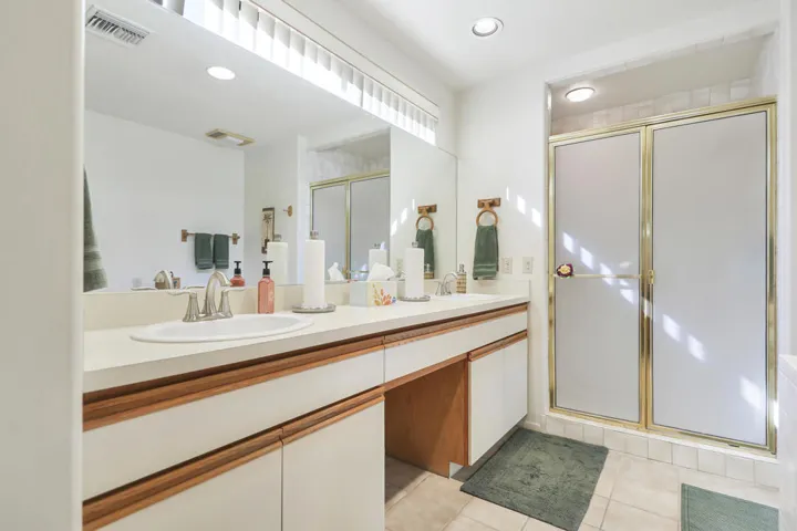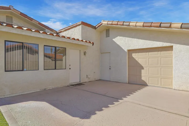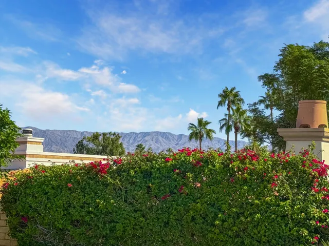 Pristine custom home with three bedrooms, two full bathrooms, and two half bathrooms on a large lot in gated Bermuda Dunes Country Club. The living room is spacious and has a stunning fireplace with split marble surround and flows into the dining room. Walls of glass let it tons of light as well as views of the very private yard with sparkling pool & spa. This lot sits a bit higher than the lot behind so you even have views of the Chocolate Mountains. The Texas-sized primary suite also has a fireplace to enjoy as well as a full bath with separate tub and shower. The other two bedrooms share a full bathroom. There is also a convenient powder room. An extra plus for this home is another room off the kitchen/dining area with a 1/2 bath and access to the garage and the side yard.The garage is huge and has another garage door leading to a paved area in the back of the home – you could pull a boat or low trailer right thru the garage and onto the private back patio!! Some improvements in the last few years: Replaced all pool equipment (2020); replaced water heater, all toilets and faucets (2019); replaced HVAC system (2016). Furniture in home will be included in the sale!! HOA of only $214 a month includes cable TV with two boxes with Showtime/HBO/Cinemax PLUS internet with Spectrum, Plus 24-hour guard gated Security!! I I D for lower electric too!!