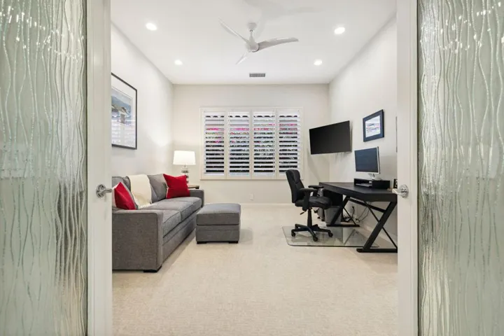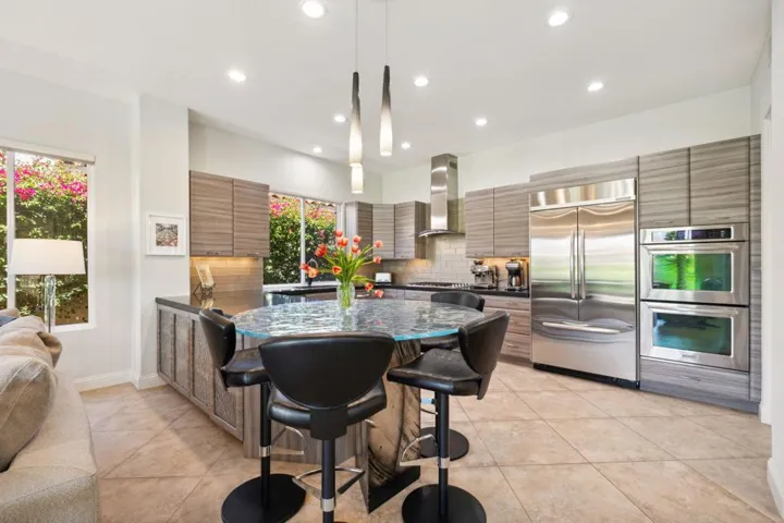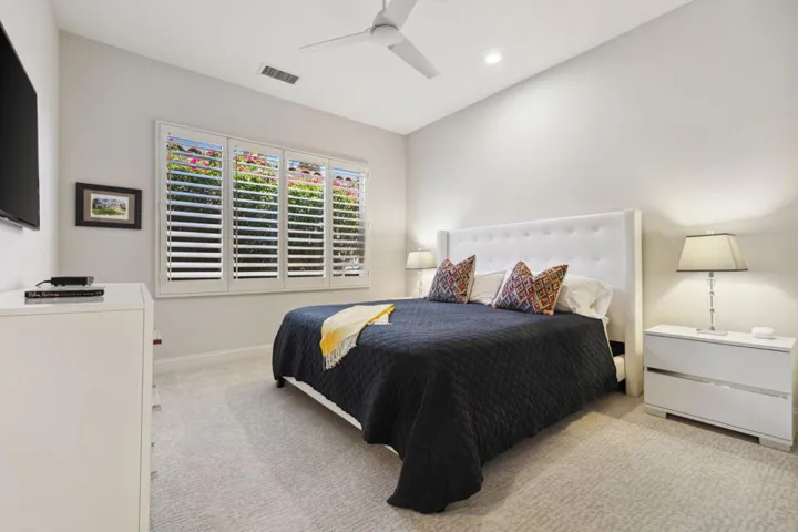 GOLF MEMBERSHIP AVAILABLE, no wait. SOUTH & WEST sunset vistas – Santa Rosa and San Jacinto Mountains. LUXURY Redefined: 12-ft ceilings + expansive sliding glass panels, Restoration Hardware-inspired neutral palette. GOURMET kitchen: Top-tier appliances, custom cabinetry, spacious pantry. Enjoy intimate dinners or festive gatherings. 3 ENSUITE RETREATS. Primary + Powder Toto washlets. YEAR-ROUND COMFORT: 42-panel OWNED solar (net-zero bills); 3 new ACs + whole home air purification. Motorized shades + garage AC. OUTDOOR SANCTUARY: Therapeutic saltwater spa + custom fire pit + BBQ island + motorized retractable awnings + misters. Membership includes all club amenities – Pickleball, Tennis, Fitness, Bocce, 3 Restaurants. SCHEDULE YOUR PRIVATE TOUR. Offers, if any, due Monday, Dec 1st.