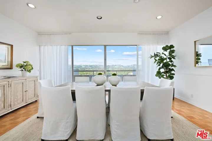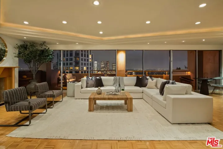 Once in a great while does an expansive Penthouse such as this become available on Los Angeles’ famed Wilshire Corridor. Now for sale for the first time in over forty years, this very special condominium home offers an unusual amount of elegant, sun-bathed space with dazzling forever views from most every room. The wide and welcoming formal foyer is ideal for showcasing art. In the north wing, find a very spacious, well-planned kitchen with a butler’s pantry and a sweet breakfast area. Adjacent is the large formal dining room with seating for twelve and access to the northern terrace, with its serene views of the Los Angeles Country Club greens, its views of the wooded mountains and hills and its views of the beautiful Bel-Air and Holmby Hills residential neighborhoods to the north. There’s also an open family room in this wing, perfect as an office or as a casual TV room. The south wing features a vast living room complete with a decorative fireplace and a very pub-like, sit-down bar. The large southern terrace is accessed here and is the perfect spot for lounging comfortably while taking in the dramatic, sparkling city lights vistas stretching all the way to the ocean. This wing also features a second kitchen and a laundry area. The primary suite is enormous and private with its own sitting room, its dual baths and its dual closets. Equally private is the ensuite guest bedroom. Two guest powder baths and an abundance of storage space complete this fabulous floor plan. Since this home is the product of having combined two units many years ago, there is flexibility in the floorplan should one wish to potentially capture additional bedrooms or make other changes. The very central location is quite proximal to UCLA and to Beverly Hills, Westwood, Century City and Brentwood and all the fine shopping and dining each area affords. Coveted inclusion in the Warner Avenue Elementary School district. The Wilshire- Comstock is a well-regarded, full-service building with around-the-clock doormen. Its location is extra special since ingress and egress is on quieter Comstock Avenue versus on busy Wilshire Boulevard. Please see listing sheet for a full roster of amenities.