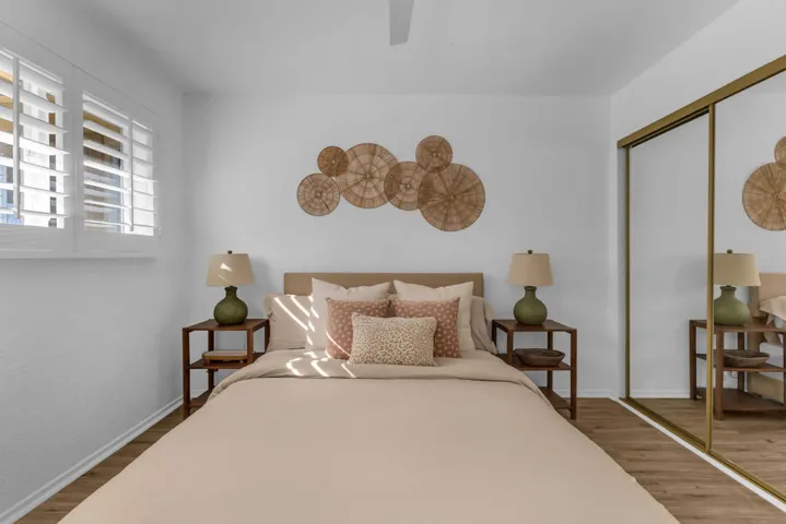 MARCH AVAILABLE ONLY (Call/Text for pricing) Prime Location! Step into this FULLY furnished Palm Desert condo where effortless Palm Springs sophistication meets relaxed Boho/Tulum charm. Thoughtfully remodeled, this single-story unit is situated in one of the quietest spots in the community and laundry in unit. Filled with warm light, soft neutral tones, and natural textures that create a calm, inviting atmosphere. The open living area blends style and comfort, featuring a kitchen with two-tone cabinetry, a large luxurious island perfect for entertaining or casual meals, and modern appliances. Every detail, from refined finishes to layered textures, creates a space that is elegant yet inviting.This private stand-alone unit offers complete privacy with no one above or below. Plantation shutters and chic design touches add timeless sophistication throughout. Just 3 minutes from El Paseo and a short drive to Indian Wells Tennis Garden and Coachella Festival. Lace up your hiking boots for the famous Palm Desert ”Hike to the Cross” right behind the complex, take a refreshing dip in one of the sparkling pools, or stroll over to your secret hideaway at Cahuilla Hills Park with 2 tennis courts and 4 pickleball courts for some friendly competition.30-day minimum stay required. All months currently available 30-day minimum stay. All months currently available! Contact for special monthly rates, pricing varies by season and length of stay. Parking can be in front of unit or anywhere on street. Laundry IN UNIT. Only 1 garage parking space, the other is shared with unit 3.