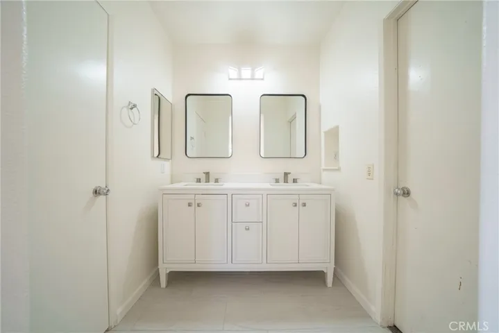 new garage door. The primary suite includes a walk-in closet and a fully renovated bathroom with dual sinks and a soaking tub. Two additional bedrooms share an upgraded hall bath with new vanities, fixtures, and tile. Additional updates include new interior paint, new carpet, and an epoxy-finished two-car garage. A separate laundry room adds convenience.