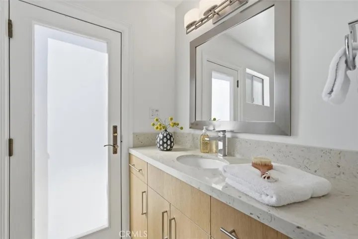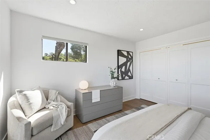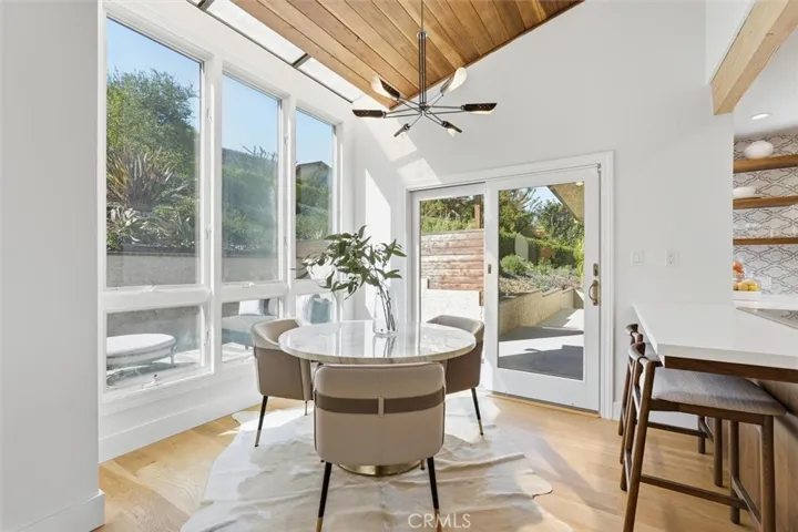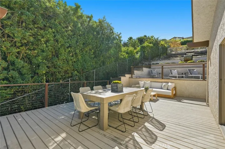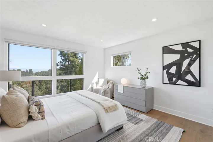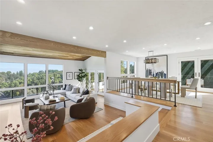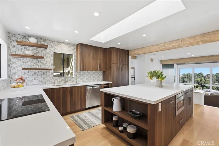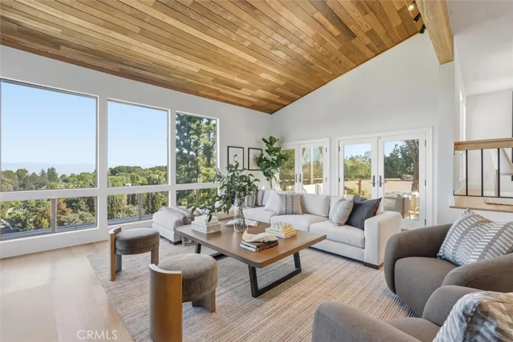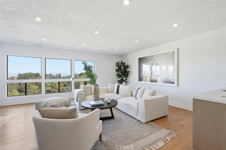 Nestled in the quiet hills of Rancho Palos Verdes, this is the private luxury home you have been waiting for. Boasting stunning views and elegant finishes throughout, this home is a true retreat. Set at the end of a tree-lined cul-de-sac and private driveway, this extensively remodeled modern residence blends timeless design with thoughtful craftsmanship. Resting on over half an acre, this home’s flexible floor plan includes four bedrooms, formal living and dining rooms, and a versatile flex space ideal for an office, media room, or home gym. The gourmet kitchen is a showpiece with Subzero refrigerator, Wolf induction cooktop, Wolf oven, Wolf warming drawer, microwave drawer, Bosch dishwasher, and large island perfect for entertaining. The spacious primary suite offers vaulted ceilings, sweeping city views. The spa-like primary bath features a freestanding soaking tub and an expansive glass-enclosed shower. Each bathroom features modern finishes and attention to detail, such as LED-lit mirrors. The generously-sized downstairs family room boasts serene views and features a built-in bar area with mini fridge and convenient bar sink. Additional highlights include engineered hardwood flooring, thoughtfully placed lighting, and custom built-ins throughout. Outside, multiple patios and deck provide calm spaces for dining and entertaining, complemented by a hot tub and lush landscaping. The three-car garage features a work bench with built-in cabinets, an additional storage room with large utility sink, and the large driveway provides ample parking for guests. Surrounded by nature and framed by panoramic downtown and city-light views, this property offers a sense of calm and seclusion that is rare to find. Conveniently located near Peninsula Center’s shops and restaurants and within the award-winning Palos Verdes Peninsula school district, this home offers a perfect blend of quiet luxury, privacy, and sophistication. A rare opportunity to experience refined living.
