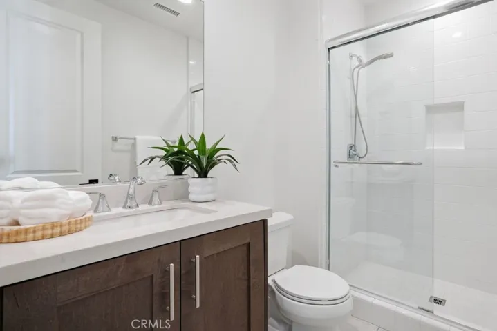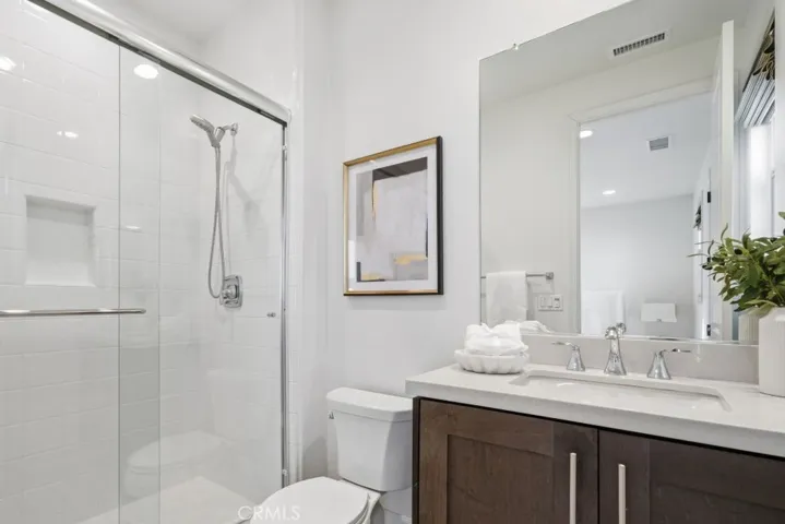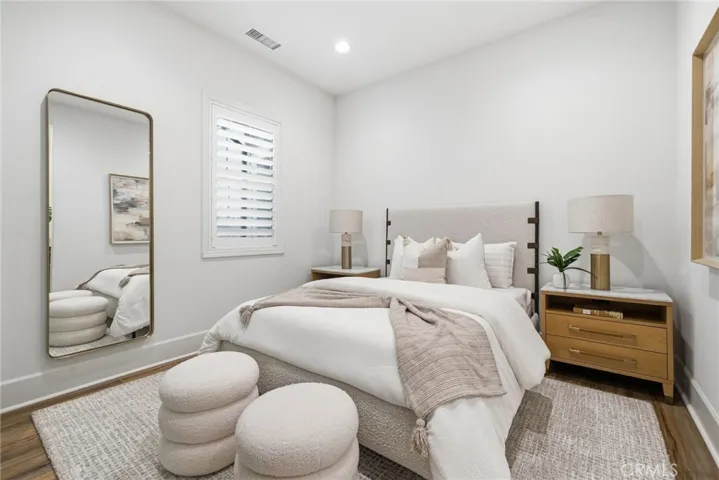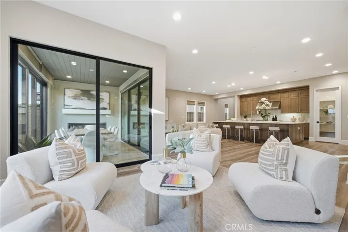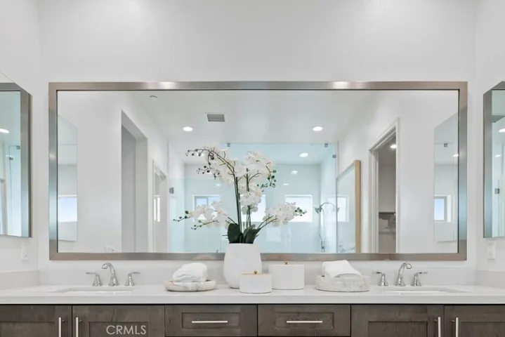 Discover an extraordinary opportunity to own one of only 111 exclusive residences in the prestigious Parkside Estates. Perfectly positioned near Bolsa Chica State Beach, this coastal community is surrounded by 20 acres of open space, a wildlife habitat preservation area, and picturesque walking trails leading directly to the ocean. This modern craftsman masterpiece is one of only 21 homes with this highly sought-after floor plan, offering over 3,800 sq. ft. of refined living space with dual living quarters, ideal for multi-generational living or hosting guests in comfort and style. With 5 bedrooms and 5.5 bathrooms, this residence perfectly balances sophistication and functionality. Step inside to a dramatic 20-foot-plus ceiling foyer adorned with maple handrails, glass-panel staircases, and designer lighting, setting the tone for the home’s elevated craftsmanship. The chef’s kitchen boasts an expansive 11-foot quartz island, premium stainless-steel appliances, and seamless flow into the open-concept great room and formal dining area—perfect for entertaining. The main-level primary suite is a serene retreat featuring a spa-inspired bath with a soaking tub, a 7-foot glass shower, and a 10-foot dual-vanity dressing area. A separate 13’ × 15’ custom wardrobe room with washer/dryer hookups adds a touch of bespoke luxury and practicality. A second ensuite bedroom downstairs offers added flexibility for guests or extended family. Upstairs, discover three spacious bedrooms, each with its own ensuite bath and walk-in closet, plus a versatile bonus room with private balcony and a wet bar easily convertible into a kitchenette—creating endless possibilities for leisure or privacy. For everyday convenience, a dedicated laundry room with washer/dryer connections upstairs complements the additional hookups downstairs, making daily living effortless. Embrace true California indoor-outdoor living as you open the 3-panel stacking glass sliders to the inviting California Room, complete with an in-wall gas fireplace. Entertain over 30 guests effortlessly, savor the refreshing ocean breeze on warm summer evenings, or close the outer glass sliders to enjoy the cozy ambiance year-round. Additional highlights include 18 paid-off solar panels, an EV charger, dual laundry areas, pre-wiring for security cameras and a future pool or spa, and upgraded 220-volt outlets for flexible use.