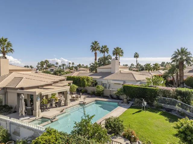 Located on the scenic shores of Lake La Quinta, this property represents a unique opportunity within an esteemed community. Upon entering the secure, 24-hour guard-gated enclave, residents will appreciate the tranquil atmosphere and sense of peace on earth. The setting features a 25-acre man-made lake, diverse wildlife, panoramic mountain views of the Santa Rosa range, and access to amenities including community tennis and pickleball courts, a heated community pool, bocce ball, and two electric boats for resident use.This meticulously maintained residence encompasses 3,188 square feet of living space, offering three bedrooms, three and a half bathrooms, and a three-car garage–one bay has been converted into a generously sized enclosed storage area or office. Expansive views are enjoyed from the main living area and primary suite. The home also features an impressive bar area, breakfast nook, and a well-appointed kitchen, providing exceptional spaces for entertaining. The third bedroom is currently configured as an office. Additional features include a private front courtyard, mature landscaping including an impressive grapefruit tree and southwest-facing backyard with a beautiful saltwater pool and spa, extensive covered patio space, and your own boat dock! Too many amenities to list, come see this beautiful home & community before its gone!