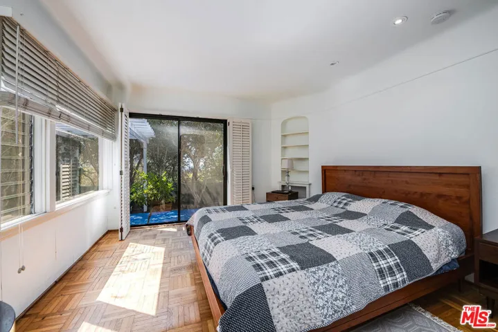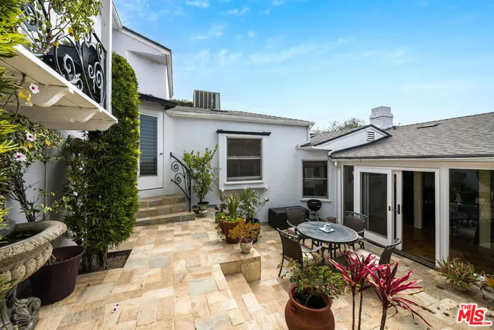 Enjoy beautiful ocean views from this light-filled Pacific Palisades residence that blends warmth, charm, and coastal tranquility. With just under 2,000 sq.ft. of living space, the home sits on a beautifully landscaped, elevated lot that enhances its privacy and natural light. At the heart of the home is an enchanting central courtyard, accessible from most rooms, creating a seamless indoor-outdoor flow perfect for relaxed California living. The main level features a spacious living room, a formal dining room, and a well-appointed kitchen with a breakfast area. The primary suite offers its own private patio with a soothing fountain and a remodeled en-suite bath. Upstairs are two additional bedrooms, including one currently used as an office with a Juliette balcony and ocean view, along with a bonus room and two additional bathrooms. Other highlights include a laundry room, an oversized two-car garage, and a new roof (done in 2022). A rare opportunity to own a warm and tranquil home, combining coastal charm with timeless comfort.
