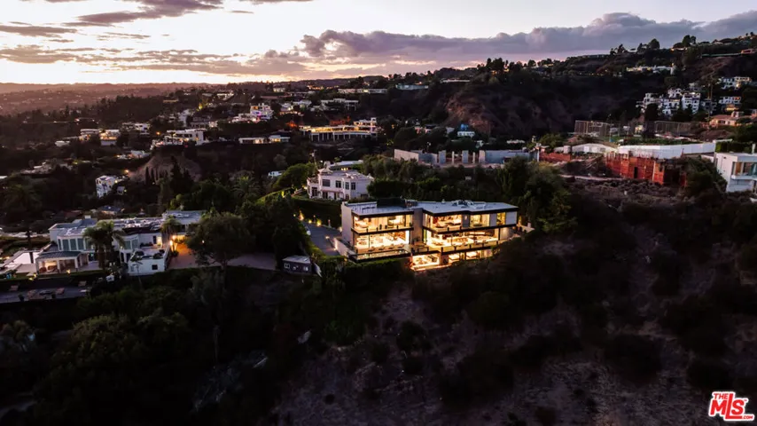 True Hollywood Hills living! Perched high above the Sunset Strip, 9199 Thrasher Avenue is a turn key architectural masterpiece by internationally acclaimed architect Paul McClean, commanding one of the most dramatic vantage points in all of Los Angeles. Walls of glass frame breathtaking 280 panoramic views that sweep from the shimmering Downtown skyline to the distant coastline of Catalina Island. By day, the residence floats effortlessly above the city; by night, it transforms into a luminous observatory of twinkling lights and endless sky. A grand double-height entry with a 34-foot Murano crystal chandelier adorned with 24K gold leaf and hand-blown glass sets a tone of artistry and sophistication. The open-concept great room flows onto an expansive terrace where a sleek infinity-edge pool and spa appear to dissolve into the horizon. The custom Italian kitchen by ErnestoModa, crowned with a Fendi chandelier and fitted with Miele appliances, is as sculptural as it is functional.Every space has been designed for indulgent living and effortless entertaining from the glass-enclosed wine cellar, fully equipped gym with horizontal massage shower, and cinematic theater, to the lounge with wraparound fire pit and walls of retractable glass that blur the line between indoors and out. The primary suite is a private retreat with a bar, boutique-style showroom closet, and a spa-inspired bath that captures the essence of luxury resort living. Air conditioned 4-6 car garage with turntable and direct access to lower level. Driveway turntable as well for luxury car accessibility. Fully integrated Creston Smart Home technology, elevator for easy access and the best views in all of L.A. Don’t miss this extraordinary modern true Paul McClean trophy estate in the famous Bird Streets of the Hollywood Hills!