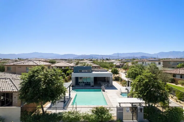 Discover the modern and clean appeal of this must-see 3 bedroom, 2 bath home in Palm Desert! Nestled within the highly desirable gated community of Genesis, this residence offers a seamless blend of sophistication and comfort. Step inside and be immediately captivated by the open floor plan with soaring high ceilings, upgraded flooring, and upgraded carpet in the bedrooms. The kitchen is a true delight, featuring quartz countertops, shaker design cabinets, an upgraded backsplash, an island with bar top seating, a walk-in pantry, and stainless steel appliances. The primary bedroom is a true sanctuary with an oversized layout, walk-in closet, and luxurious en-suite bathroom. Outside, the private covered patio is perfect for enjoying sunset views or hosting al-fresco dining. Community amenities include a fitness center, pool and spa, outdoor BBQ area, doggie parks, and walking paths. Conveniently located near schools, shopping, the new Acrisure Arena, and the I-10 freeway. Don’t miss out on this exceptional opportunity – call today for a private showing and experience the true beauty of this Palm Desert gem.