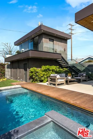 This stunning Venice estate masterfully combines the perfect balance of modern luxury, comfort and privacy. Built in 2016, this spacious home was designed for seamless indoor-outdoor living, featuring high ceilings, expansive windows, and floor-to-ceiling sliding glass doors that welcome the exterior spaces and fill the home with natural light. Elegant finishes, including concrete and oak flooring, plastered walls, and custom cabinetry, add to the sophisticated ambiance. The primary suite is a private retreat with a walk-in closet, a lavish bathroom, and its own private deck. Outside, enjoy California living at its finest with a heated in-ground pool and spa, a fire pit, and a barbecue area, perfect for relaxation and entertaining. There are three additional generously-sized bedrooms, each with their own en-suite bathroom. The home also features a two-car detached garage and modern security features. A guesthouse with its own bath and private deck above the garage offers additional space for living, work, or leisure. Situated in the vibrant Venice neighborhood, close to dining, attractions, and entertainment, this home is ultimate blend of indulgence and convenience.