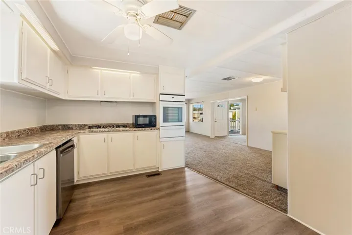 Discover the perfect blend of comfort and leisure in this beautifully renovated 3-bedroom, 2-bathroom mobile home nestled within an enchanting 55+ resort community. Imagine stepping inside to find 2 spacious, living areas adorned with updated flooring that flows seamlessly into a modern kitchen, where new countertops sparkle alongside an updated stovetop and oven, ready for your culinary creations. Imagine holiday gatherings as you cook and entertain with ease in this beautifully appointed, open concept home. This home has been lovingly reimagined, featuring refreshed bathrooms and bedrooms. All transformed into modern chic. Enjoy the convenience of an indoor laundry area and a great BBQ station on your new back porch. The updated front porch is perfect for sipping morning coffee while soaking in the serene surroundings. If furry friends are a part of your household, the enclosed and gated dog run will offer safety and a secure space for your four-legged babies to enjoy the afternoon sun. Beyond your front door, the vibrant community beckons with its stunning five lakes, soothing waterfalls, and playful fountains, inviting you to fish, golf, or engage in friendly matches on the sports courts. Dive into the Olympic-sized swimming pool or unwind in the heated spa, all while enjoying the modern clubhouse that offers outdoor BBQ and picnic areas ideal for socializing. Join in the fun with exciting community events featuring live bands and dancing, or savor delicious taco Tuesdays and breakfast burritos, creating memories that enhance the essence of resort living. Come live your best life in this refreshed haven where comfort meets a vibrant lifestyle, and every day feels like a joyous escape.