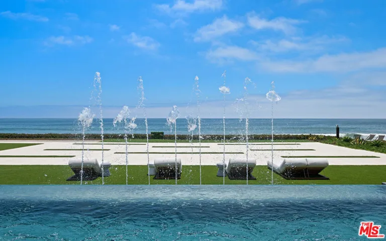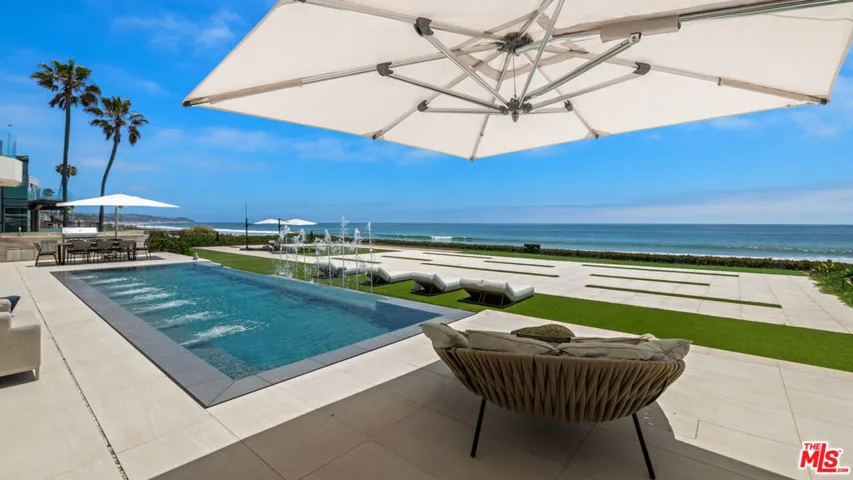 Welcome to your seaside paradise in Malibu! Nestled on nearly 3/4 acre of beachfront bliss, this exquisite property boasts an unparalleled location on Broad Beach. With over 7,600 square feet of luxurious living space, the estate comprises a Main House and a Guest House, ensuring opulence and comfort at every turn. The Guest House, a haven of sophistication, features 2 bedrooms, 2 bathrooms, a well-appointed kitchen area, family room, laundry room, and a security office with a separate bathroom. The main dwelling houses a total of 6 bedrooms, each equipped with ensuite bathrooms. The home’s lower level is an entertainer’s dream, with a family room featuring a bar, a spacious kitchen adorned with Gaggenau appliances, a dining room offering ocean-view seating, and a living area with a bar and wine closet. A Guest Suite, complete with a seating area, ensuite bathroom with a steam room, and direct access to the pool and beach areas, ensures a seamless blend of luxury and convenience. Upstairs, three secondary bedrooms with ensuite bathrooms, a den with a TV viewing area, and a main suite await. The expansive main suite encompasses a private office, sitting room, main bedroom, two walk-in closets, and a lavish main bathroom with a steam shower and soaking tub. A 1,000 sq ft balcony off the primary bedroom provides breathtaking 180-degree unobstructed ocean views. Completed in 2022, the residence is equipped with state-of-the-art electronics, security cameras, and alarm systems, all seamlessly controlled via a Control 4 app. The Family Room Theater features a 9’x18′ video wall with full multiplexing, allowing simultaneous viewing of four events. Outdoor amenities include a zero-edge pool with swim jets, jacuzzi jets, and a water wall in the main courtyard. The beachside entertainment area boasts a built-in barbecue, a 40′ infinity-edge pool with a Baja shelf, a dancing fountain, and over 6,000 sq ft of decking and entertainment space. Embrace coastal luxury and create everlasting memories in this Malibu masterpiece.
