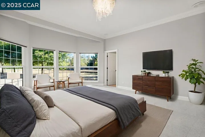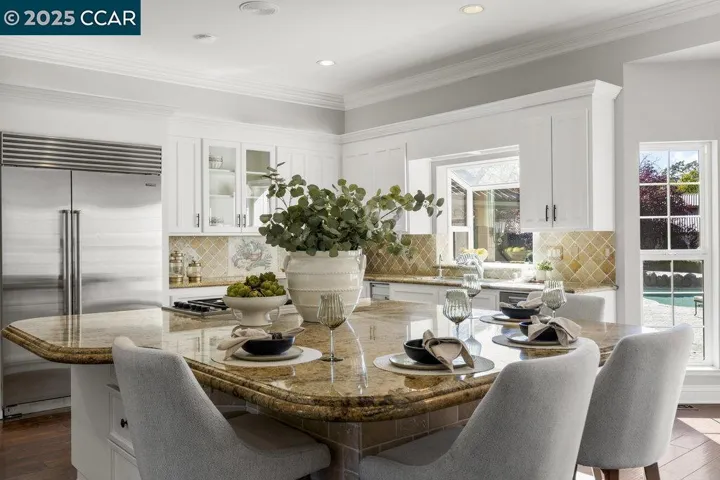 Welcome to 5655 Bruce Drive set on a flat 5.35-acre lot. This single-story country estate spans over 5,373 sq.ft. with 6 bedrooms, ( one used as an office), a bonus room, and 3.5 baths — offering flexibility for family and guests alike. The chef’s kitchen is the heart of the home, featuring high-end stainless steel appliances, a grand center island with seating, walk-in pantry, and large casual dining area. The spacious formal dining room can host large family get togethers, the living room intimate gatherings, while the family room showcases soaring ceilings, a fireplace, and wraparound bar. The primary suite and secondary bedroom sit on one side of the home, with additional bedrooms (including a junior suite) on the other. Mudroom, bonus room, & large laundry area complete the thoughtful floor plan. Outdoors, enjoy resort-style living with a covered pavilion and full outdoor kitchen, pool & spa, and expansive grounds lined with many fruit and nut trees. Additional features include hardwood flooring, new carpet and paint, video surveillance system and owned solar. For the equestrian there is a 6-stall barn plus multiple fenced pastures and space. Just minutes from top-rated DANVILLE schools, shopping, & dining offering luxury country living in the heart of Tassajara Valley.
