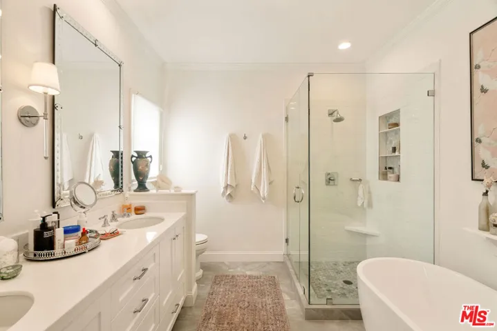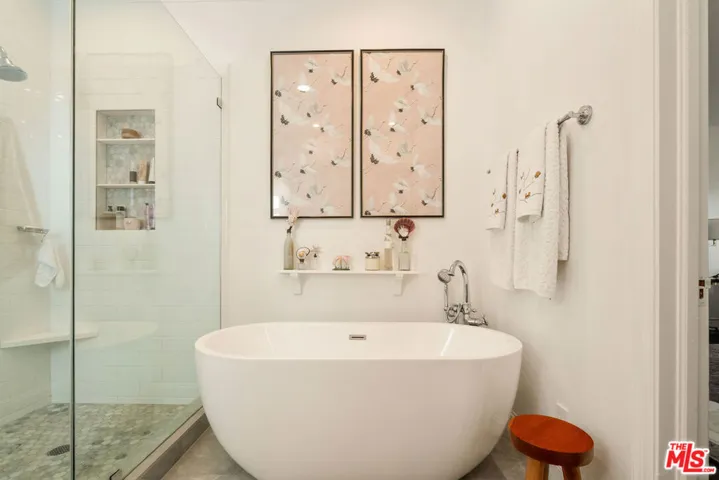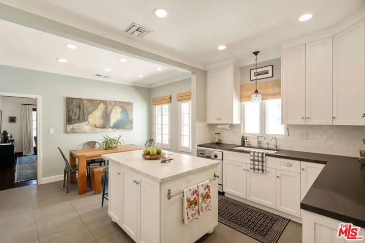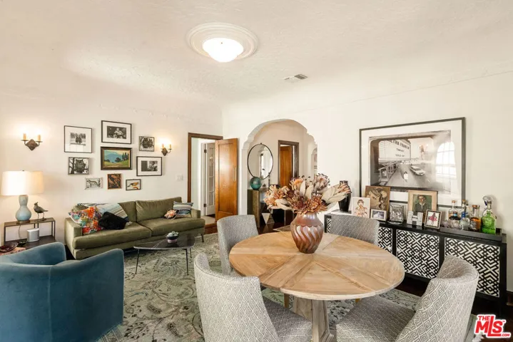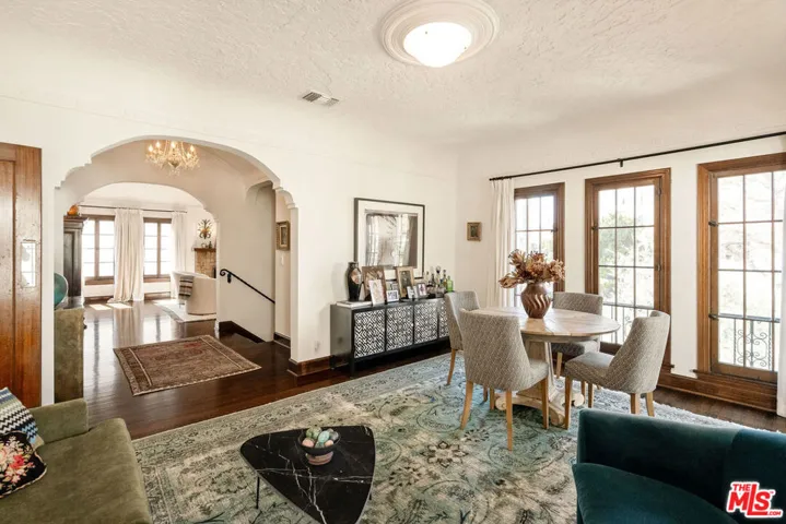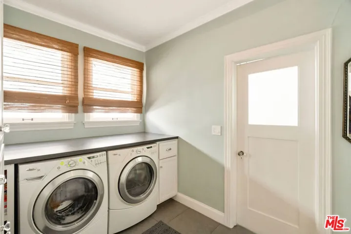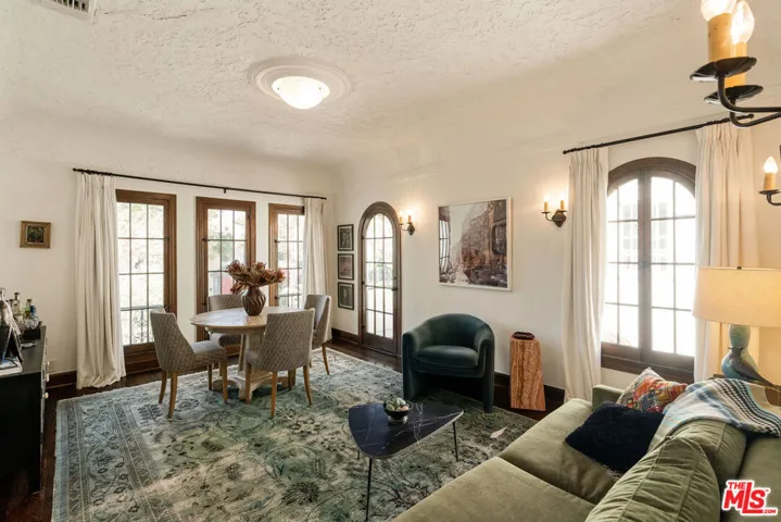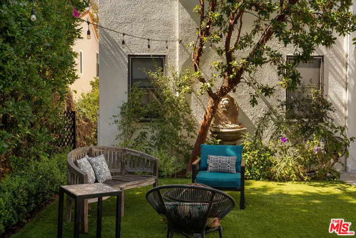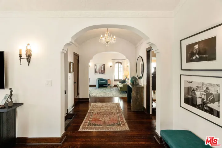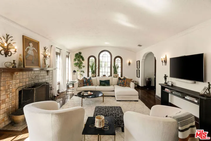 Welcome home to this beautiful 3-bedroom, 2.5-bathroom upper unit in a classic 1928 Spanish Hancock Park duplex. Brimming with natural light, original details and classic updates, this spacious residence blends historic details with modern upgrades. Inside, you’ll find original hardwood floors, high ceilings, tons of windows and crown moldings that give the home an abundance of character. The impressive living room features an original Batchelder fireplace, perfect for a fire on cozy evenings. The adjacent dining room has floor to ceiling windows and opens to a private, covered patio. The renovated kitchen features an island with carrera marble and stainless appliances which is open to a generous breakfast area. An oversized walk-in coat closet anchors the entryway. You’ll also enjoy a dedicated laundry room, extra built-in storage and a charming library nook for reading or working from home. The primary bedroom features a renovated ensuite bathroom and walk in closet. There is a dual zone central A/C and a fire/alarm system. The renovated exterior features a gated driveway to a garage for 1 car with shelving and more storage. There is a lovely shared backyard space w/ cafe lights. This coveted location is on a quiet, tree-lined street, with plenty of parking, blocks from Larchmont Village and many shopping & dining options on La Brea. With Historic charm, modern updates, and an unbeatable location, this is prime Hancock Park living at its best.
