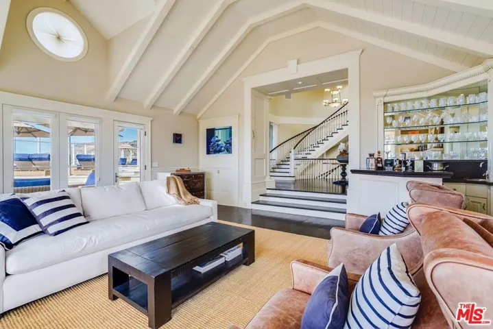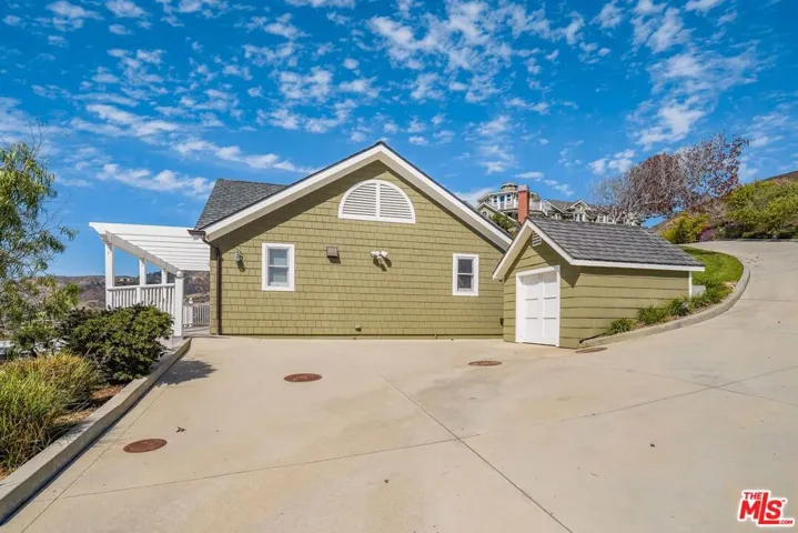 Nestled within an exclusive gated community, this exquisite Cape Cod style estate offers the ultimate in coastal luxury and understated elegance. Fully gated and private, the residence captures panoramic ocean and mountain views from nearly every room and is perfectly designed for both grand entertaining and comfortable everyday living. The six -bedroom and six-bath main house features hardwood floors throughout and a stunning entry with a sweeping staircase. The formal living room showcases bay windows, a fireplace, and French doors that open to a resort-style outdoor oasis with a sparkling pool and spa, fire pit, and multiple seating areas for entertaining. A formal dining room with coffered wood ceilings and a gourmet kitchen with a central island w/ Carrera marble countertops, and high-end appliances complete the main level. Upstairs, the romantic primary suite offers a fireplace, dual walk-in closets, and a luxurious ocean view spa bath. A dedicated two-bedroom plus den kids’ wing, along with an additional en- suite bedroom, provide ideal spaces for family or guests. The dramatic fourth-floor rotunda makes for a stunning ocean-view office or retreat. The lower level features a versatile fifth bedroom or gym, a pool table/game room, an additional bedroom, and a laundry room and dry sauna. Additional highlights include a three-car garage and a large grassy yard surrounded by mature trees and a walk path that winds its way down to the detached guesthouse. The separate, detached guest house with wraparound decks and a full kitchen and laundry, enjoys sweeping ocean vistas perfect for guests, an office, or studio. Expansive landscaped grounds include a charming waterfall, a secondary solar power system, and a generator. Experience privacy, sophistication, and the best of Malibu coastal living in this one-of-a-kind estate.