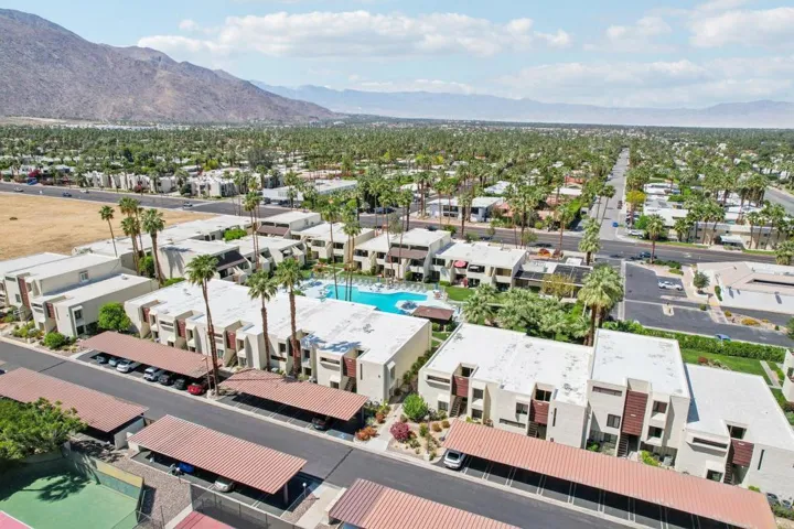 TENNIS or PICKLEBALL ANYONE? You’ve come to the right place! Welcome to Smoke Tree Racquet Club, where resort-style living meets the active Palm Springs lifestyle. Nestled at the gateway to the highly sought-after Indian Canyons neighborhood in South Palm Springs, this vibrant community offers everything you need–and more. Enjoy one of the largest pools in Palm Springs, a maxi-size spa, and lighted tennis & pickleball courts that are perfect for day or evening play. The adjacent dog park is a ”paw-some” bonus your pets will love–ARF! This spacious 1-bedroom, 1-bath upper-floor condominium features a private balcony with breathtaking views of the pool and surrounding mountains. Plus, enjoy direct access to the resort amenities via a convenient semi-private rear stairway. LOCATION, LOCATION, LOCATION! Just across Sunrise Way is the rustic Smoke Tree Village, home to Ralph’s Fresh Fare with Starbucks, Giuseppe’s Italian, Smokin’ Burgers, and more. Less than a mile away, you will find Smoke Tree Commons, offering Jensen’s Fine Foods, TJ Maxx, World Market, Petco, and more shopping and dining options. Looking for a night out? The pizzazz of downtown Palm Springs is only 2.5 miles away, brimming with restaurants, shops, entertainment, and that unforgettable desert vibe.