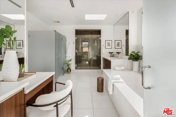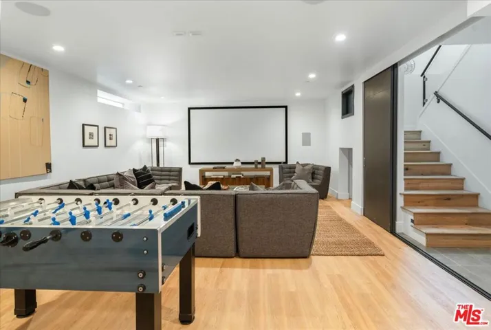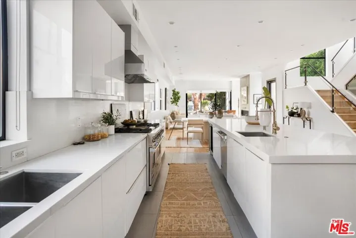 Located in highly coveted Prime Beverly Grove, this private, gated modern architectural home offers seamless indoor-outdoor living. Filled with natural light, the spacious two-story layout includes a basement media room.Features lofty ceilings, recessed lighting, designer tile, and hardwood floors throughout. The custom Chef’s kitchen boasts Viking appliances, marble counters, dual sinks, three ovens, large center island, stainless steel accents, and a walk-in pantry.Living room opens via pocket sliding doors to a stunning backyard oasis with pool, spa, firepit, BBQ, waterfall, and gazebo perfect for entertaining.Upstairs, the luxurious primary suite features a fireplace, balcony, soaking tub, rain shower, and large walk-in closet.Walking distance to Melrose Ave dining, shopping, and nightlife.