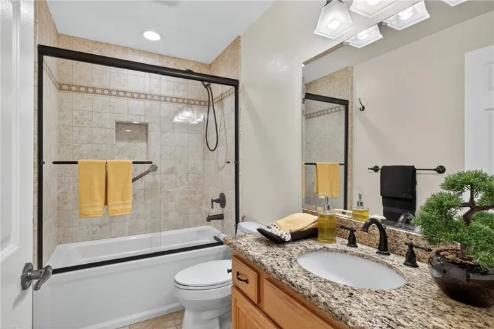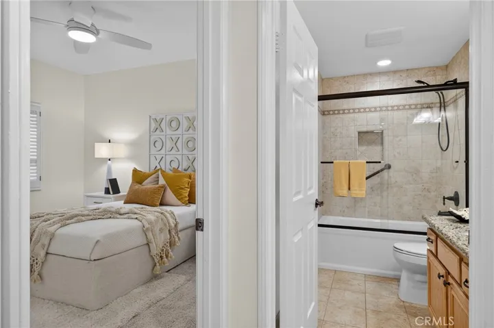 The kitchen and guest bathroom were remodeled in 2023, with new flooring and modern updates. The kitchen offers ample cabinetry, counter space, updated appliances, and a bright breakfast nook. Off a secondary hallway are two bedrooms, including a primary suite with a walk-in closet and a remodeled en-suite bath; the second bedroom has mirrored closets and an updated bath. The roof for the entire complex was updated within the last few years.