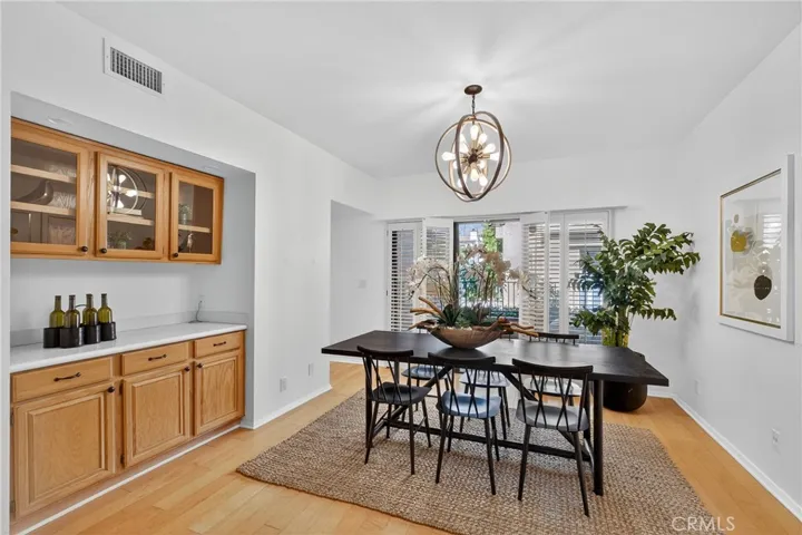 Spacious, light-filled, this single-level 2-bedroom, 2-bathroom home offers an exceptional lifestyle in one of Arcadia’s most sought after neighborhoods. Featuring a large living room with hardwood floors, high ceilings, a gas fireplace, and plantation-shuttered windows. The open dining area includes a built-in cabinet with recessed lighting and leads to a pleasant, covered patio with tranquil tree and mountain views.