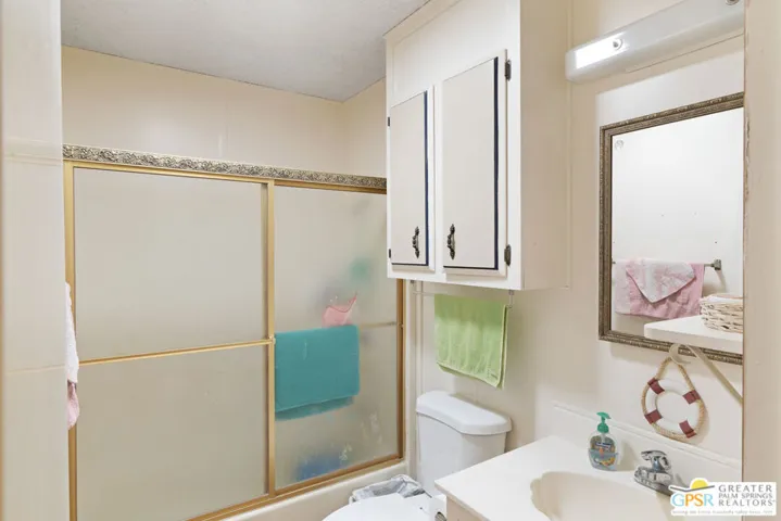 Welcome Home to this Triple wide home in the 55+ Desert View Mobile Home Club. As you enter this home, you will notice the vaulted beamed ceilings in the open living area with a Fireplace and built-in shelving. Just off the living area is a formal dining room with a built-in display cabinet and a window that showcases the view. The primary bedroom has an ensuite with a separate shower and tub and features a large walk-in closet. The generously sized guest room also has a walk-in closet. The Kitchen, with breakfast bar, has ample space for all your cooking needs and is open to the dining area. Off the kitchen is your Laundry room with extra storage and a seating area that can be used as a folding/sewing area or can be used to set up your home office. Enjoy the outdoors on your wrap-around covered patio with stunning views of the desert landscape and surrounding mountains, or gather fresh citrus fruit from several trees located on the property. Park amenities include a pool, mineral spas, a recreation room, and a picnic area. Make your appointment today to view this wonderful home with its stunning views.
