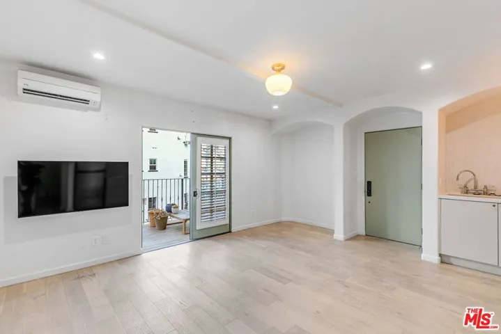 Welcome to Casa Larissa! Nestled in the hillside above Sunset Blvd in the heart of Silver Lake, Casa Larissa is an original 1920s Spanish 4-unit community re-envisioned with timeless beauty and unparalleled artistry by Studio Cadiz. This one-of-a-kind first-floor rental blends classic Eastside charm with sophisticated modern details, offering a unique opportunity to live in a thoughtfully designed and lovingly restored space. Come inside and be greeted by handcrafted details that make this home truly special: curved arches, French doors, and custom built-ins. The interior features stunning white oak flooring, a custom kitchen with quartz counters, brass fixtures, smooth stucco walls, and a Cle tile backsplash. French doors lead to a private, spacious Ipe wood deck patio with custom wrought iron railings, a perfect spot to unwind or entertain. The unit boasts locally sourced artisan light fixtures, a front deck in the living room with breathtaking views of the Silver Lake Hills, and a bathroom adorned with Arto tiles and smooth stucco shower walls. Additional conveniences include in-unit laundry, ductless AC and heat, and updated windows to ensure you are living your best life in 2025. Casa Larissa’s community outdoor space offers a landscaped hillside patio featuring panoramic easterly views of the cityscape. All this, just one block from the shops, cafes, and restaurants of Sunset Blvd! Don’t miss this rare opportunity to call Casa Larissa home. Schedule a viewing today!