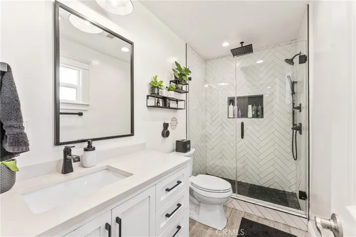 The home offers large bedrooms, including a spacious primary suite with a walk-in closet, attached en suite bathroom, and double doors leading to the large backyard — perfect for relaxing or entertaining. The hallway bathroom features a dual sink vanity and is full updated as well.