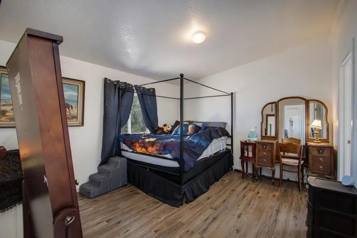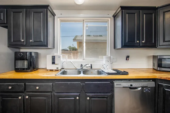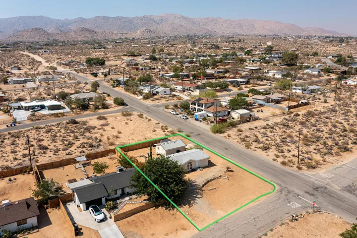 Panoramic views! Beautiful 3 bed 2 bath home in the sought after hillside section of the JT village, plus a large detached garage and fenced backyard on almost a quarter acre corner lot. Front door opens to the living room with vaulted ceilings and over sized bay window. Kitchen features a breakfast bar, stainless steel refrigerator, stove and dishwasher, long counters and ample cupboards. Master bedroom with private bath and walk in closet. Two other large bedrooms are located at the other end of the living room. Enclosed backyard offers privacy and wonderful open sky views. The detached two car garage is conveniently located at directly off the paved road. With this central location you are a short bike ride and drive to organic food, cafes, restaurants, boutiques and some of the nicest outdoor trails in the country. Nearby Sportsman Park offers tennis courts, basketball courts, baseball diamond, playground, dog park and shaded picnic tables. Just under 5 miles to the Joshua Tree National Monument where about 3 million tourists visit annually. 40 miles to Palm Springs. 128 miles to Los Angeles. This would be a wonderful full time residence, investment, and rental. Don’t wait on this one – schedule a viewing today! Should have 433a, TBD. Length & Width Approximate.