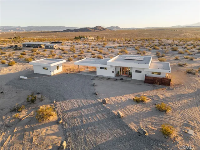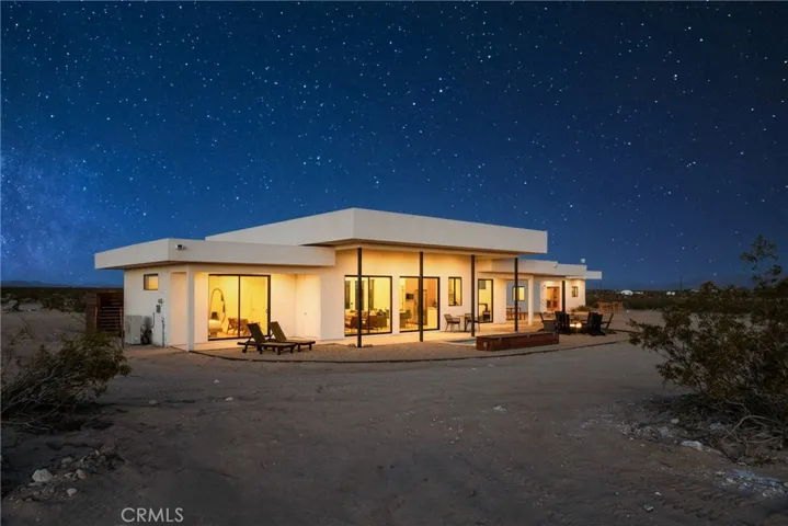 Looking for the perfect Desert Escape? It’s Orion’s Whisper — A 5-star turn-key Airbnb retreat that’s as beautiful as it is profitable. This stunning, modern desert masterpiece spans approximately 1,326 sq ft., with an additional 375 square feet of detached ADU space, all set on 2.5 acres of serene privacy surrounded by sweeping desert views. Perfectly blending luxury living with investment potential, Orion’s Whisper is already a successful operating short-term rental with a Superhost track record and a complete STR package in place — ready for seamless ownership and immediate income! Please note that this property features two spacious primary suites, each with a spa-style bathroom that includes glass-wall showers, modern tiles, brand-new vanities, and modern fixtures. Concrete floors are featured throughout, along with soaring ceilings and a linear zero-clearance fireplace framed by built-in contemporary shelving. The kitchen features new appliances, counters, cupboards, fixtures, and kitchenware, and comes stocked with all the desired kitchen gadgets. The wholly owned solar panels, accompanied by a brand-new solar panel gateway and mini-split A/C systems throughout the property, enhance energy efficiency in every living space. Designed for the indoor-outdoor lifestyle that defines desert living, this home brings the outside in through large, picturesque windows and clean architectural lines. The Detached ADU/guest house features a complete and stocked kitchen, en-suite bathroom, a mini-split AC/heat system, and custom double-glass entry doors. Leading you outdoors, the cocktail Pool that doubles as a hot tub is perfect for stargazing nights or sunny desert days. In addition to the guaranteed views of expansive desert scape, the wrap-around concrete patio tastefully displays Mt. San Gorgonio and Mt. Nebo! Whether you’re looking for a profitable investment, a private weekend escape, or both, Orion’s Whisper delivers on every front. Located steps from 30 acres of open government land — ideal for hiking and exploring outside of the designated Joshua Tree National Park. This property embodies tranquility, creativity, and connection to nature. Turnkey. Stylish. Profitable. It’s worth seeing for yourself. Experience the serenity, the design, and the income potential that make Orion’s Whisper one of the desert’s most sought-after retreats.