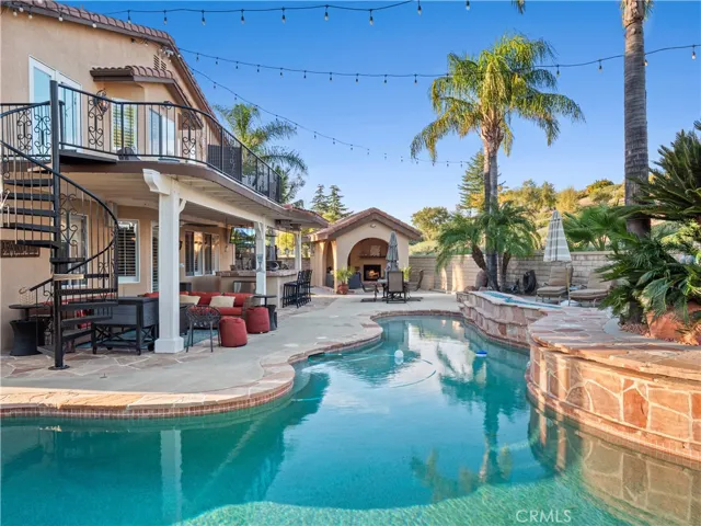 Come see this incredibly upgraded home with 4 Bedrooms + Den/Sitting Room and 4.5 Baths. This home’s backyard is an absolute dream with a large pool, lazy river, Therapeutic SPA (6 feet deep), Fire wall, pool house with shower, gazebo w/fireplace, A built in BAR with BBQ and Ice Maker! This is an entertainer’s dream home! Custom Travertine tile floors, Built-Ins in the Family Room, Dining Room, and Sitting Room. The fantastic Primary suite with a spa like tub and amazing shower with multiple shower heads! Walk-In-Closet with custom organizers and an Island with drawers. Down the hall a junior suite with a private bath and two more bedrooms with a Jack-and-Jill bath. The home also offers surround sound system, formal living room with cathedral ceilings, formal dining room, family room, open and bright kitchen with center island and more fantastic upgrades. This is a MUST SEE!