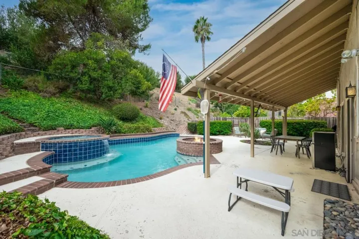 Welcome home to this stunning 5-bedroom, 4-bathroom residence in Del Cerro, perfectly situated near Mission Trails Park and Cowles Mountain. This beautifully maintained home offers three cozy fireplaces, an updated kitchen, and a remodeled primary suite bathroom. Enjoy the benefits of owned solar and a private backyard oasis, complete with a pool and hot tub, ideal for entertaining or relaxing on warm San Diego evenings (or year-round, because it is San Diego!). The spacious 3-car garage provides plenty of room for vehicles, outdoor gear, and all your holiday décor. With two bedrooms and a full bathroom conveniently located on the first floor, this layout is perfect for multigenerational living or hosting out-of-town guests.