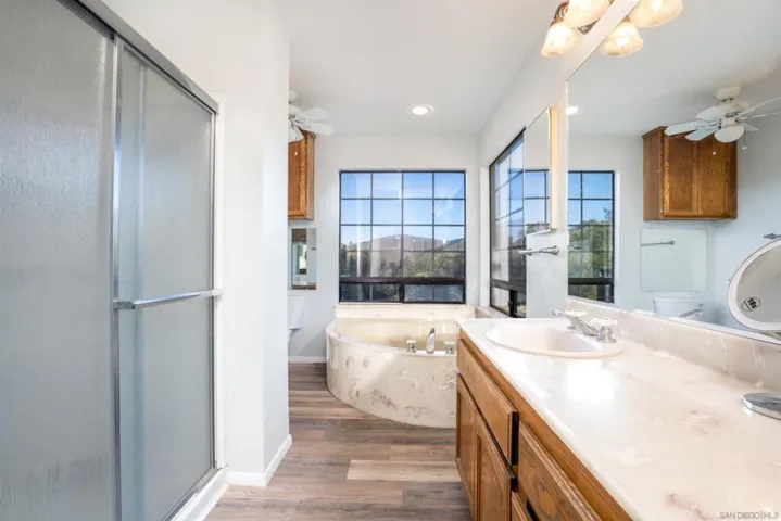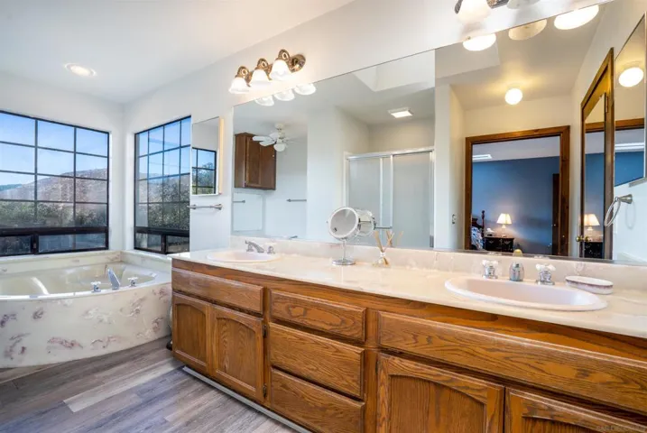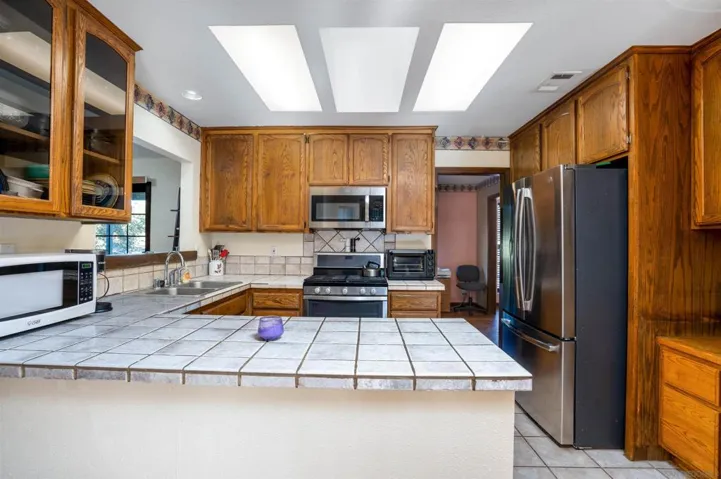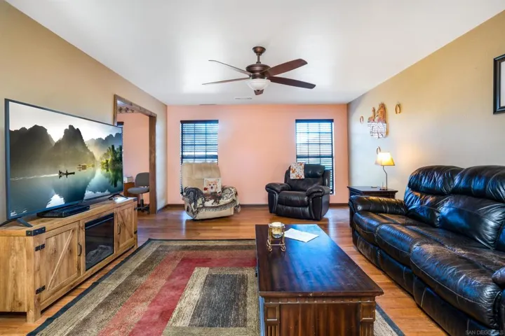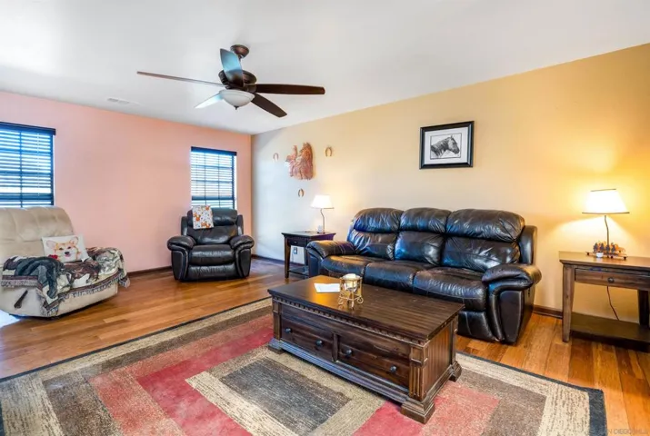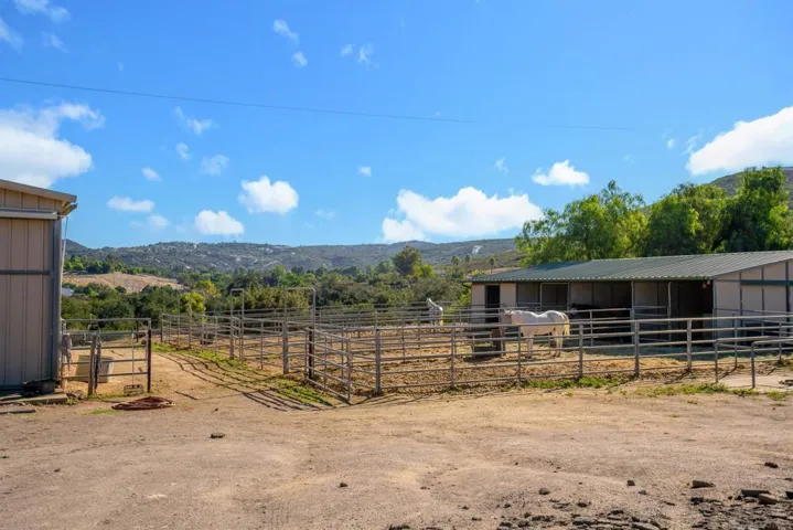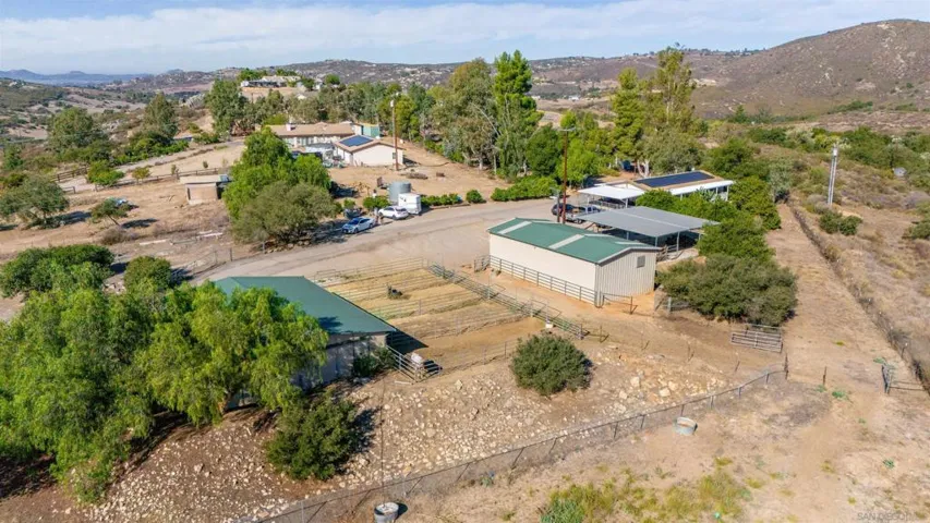 Nestled on an expansive, fully fenced parcel in the hills of Ramona, this beautifully updated multi-unit equestrian property offers an exceptional blend of comfort, functionality, and income potential. Designed with a thoughtful layout that accommodates privacy and versatility, the property features distinct living quarters accentuated by vaulted ceilings, abundant natural light, and sweeping views of the surrounding countryside. Recent upgrades include a chef’s kitchen with elegant quartz countertops, stainless appliances, and custom cabinetry, along with designer-finished bathrooms and hardwood-style flooring. Each home is equipped with 14 owned solar panels, providing energy efficiency and long-term savings. For equestrian enthusiasts, the property is ideally equipped with a 4-stall Barnmaster barn, cross fencing, and ample open space for horses, training, and riding activities. In addition, there is a 1,500 sq. ft. Barnmaster shop building, perfect for equipment storage, a workshop, or additional hobby space. These features make it perfectly suited for those seeking a peaceful country lifestyle with modern amenities and well-planned equestrian facilities. The property also boasts a stunning ADU, thoughtfully designed with the same attention to detail—ideal for guests, extended family, or rental income. Outside, the generous grounds include mature landscaping, a covered patio perfect for alfresco dining or entertaining, and a separate yard area for recreation or relaxation. Situated on a quiet country lane yet conveniently close to town amenities, this offering stand