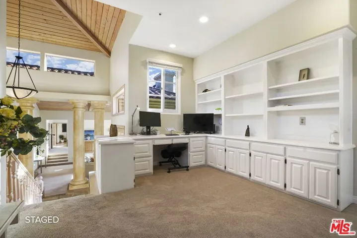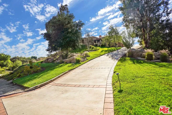 Located in the prestigious guard-gated community of Bell Canyon sits this one-of-a-kind spectacular view estate! Follow the long private driveway up to experience the home’s true sense of privacy and tranquility. This remarkable residence sets itself apart with its open floor plan, soaring ceilings, and light-filled interior. Through the double-door entryway, you’re welcomed into an expansive living room featuring a fireplace, wet bar, and custom wood-beamed ceilings. The adjacent family room showcases floor-to-ceiling walls of glass overlooking the lush park-like grounds, mountain views, and the sparkling pool and spa. The theme is simple yet sophisticated, with abundant natural light complemented by the warmth of wood and recently added engineered flooring throughout the main living areas and bedrooms. Enjoy the chef’s kitchen with granite countertops, a center island, built-in refrigerator, pantry closet, and a separate breakfast nook. The formal dining room is perfect for entertaining large gatherings or hosting intimate dinners. One wing offers a generous primary retreat with a fireplace, an incredible spa-like bathroom, and an extra-large walk-in closet. Just off the primary suite is a great office area with custom built-ins. The second wing features three spacious bedrooms and two beautifully appointed baths.The outdoor space is a true entertainer’s delight, with manicured grounds, multiple patios, and verandas all designed to take in the breathtaking views. Bell Canyon offers a lifestyle like no other, including a community park, fitness center, tennis courts, equestrian center, hiking and riding trails, and the highly sought-after Las Virgenes schools. This one-of-a-kind estate has it all. Schedule your private showing today!
