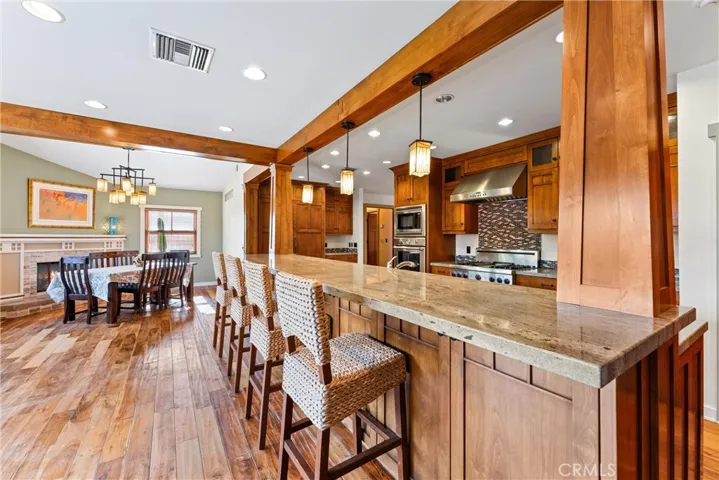 Beautiful Single-Story Pool Home in a Highly Desired Anaheim Neighborhood. This upgraded 2,008 sq. ft. home offers 3 bedrooms, 2.5 baths, and a flexible floor plan with enough room for an optional 4th bedroom. The modern kitchen includes custom craftsman-style cabinetry, granite countertops, a breakfast bar, recessed lighting, and stainless steel appliances, including a Thermador stove and built-in refrigerator/freezer. The kitchen opens to the dining area with a fireplace and a spacious family room. The private primary suite features an en-suite bath, while the additional bedrooms are well-sized with great natural light. The backyard features a fenced pool, a covered patio with a ceiling fan, and a built-in BBQ area—ideal for entertaining. Notable upgrades include new exterior paint, stacked-stone accents, a tankless water heater, a central attic fan, and a direct-access 2-car garage. Excellent location close to schools, parks, shopping, dining, and Anaheim attractions.