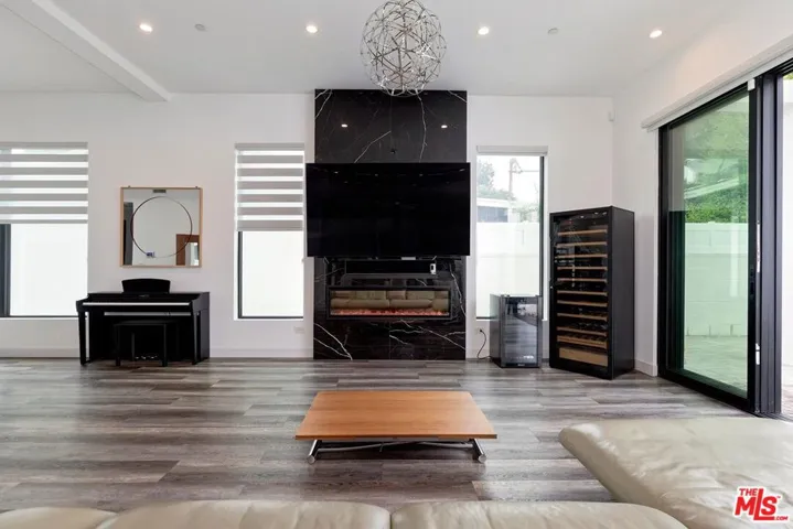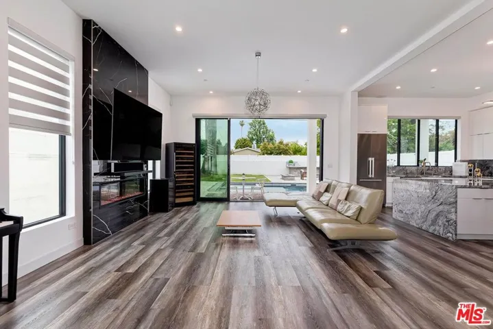 Newly built in 2020, this modern two-story home features 5 ensuite bedrooms, 5.5 baths, and an office. The open floor plan offers high ceilings, floor-to-ceiling windows, and seamless indoor-outdoor flow. The elegant living and dining area centers around a stone-framed linear fireplace, while the gourmet kitchen boasts Miele appliances, a center island, and breakfast bar. Sliding glass doors lead to an entertainer’s backyard with a sunken fire pit, BBQ area, and sparkling saltwater pool & spa. The luxurious primary suite includes a spa-like bath, walk-in closet, and private balcony. Enjoy multiple patios, a sundeck with city views, and a 2-car garage with EV charger – modern elegance and comfort in every detail.