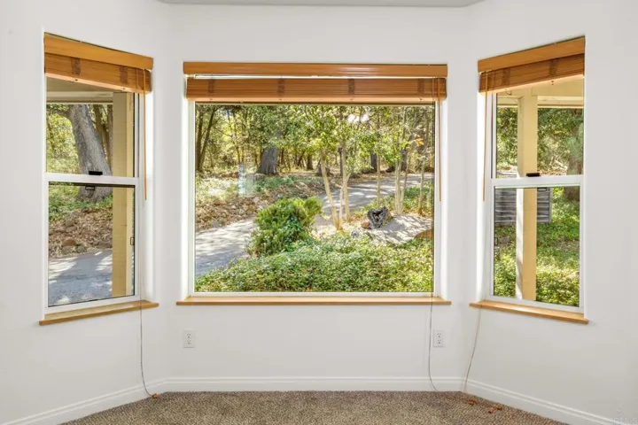 Your Story Begins in the Mountains, tucked among the whispering oaks and tall pines of a quiet Julian neighborhood. Pera Alta Hideaway welcomes you home to a lifestyle defined by peace, comfort, and connection. Mornings begin with birdsong and soft sunlight filtering through the trees, while evenings unfold on spacious wrap-around decks under a canopy of stars. Set on a usable 1.39-acre wooded parcel, this spacious 2,772± sq. ft. home features two bedrooms plus a large bonus recreation room, 2.5 baths, an oversized garage, and a separate barn/workshop building, offering the perfect blend of comfort, functionality, and mountain charm. ~ Step inside to a spacious great room anchored by a handsome brick fireplace and a large bay window that fills the space with natural light. Vaulted ceilings enhance the airy ambiance, while a built-in bookcase add charm and functionality. The kitchen – ideal for both everyday living and entertaining – features a generous center island, natural oak cabinetry, a walk -in pantry and a chef’s stove. The open layout connects seamlessly to the dining and living areas, creating an inviting flow for gatherings large or small. ~ The main-level primary suite offers a peaceful, and private retreat with spa-like bath and walk in closet offers. Downstairs, a flexible bedroom with bath adapts to your needs – ideal for a growing family, home office, or guest quarters. With potential to divide into dual bedrooms, this space evolves as your story does. ~ A separate recreation room with its own entrance and half bath has endless possibilities — a game lounge, creative studio, guest suite, or even a possible income-generating retreat. ~ Outside, an oversized two-car garage and barn with workshop provides space for hobbies, animal keeping, or crafting projects. A paved circular driveway ensures easy access, and ample parking while adding to the home’s curb appeal. ~ Fresh interior paint and new carpet make the home move-in ready, yet it remains a perfect canvas to personalize— a true country sanctuary awaiting your touch. ~ Just minutes to downtown Julian, you’ll enjoy crisp mountain air, scenic trails and a welcoming community known for its rich history and small-town charm. ~ Whether you’re seeking a full-time mountain retreat or a peaceful weekend escape, Pera Alta Hideaway is more than a home — it’s your invitation to experience the magic of mountain living.
