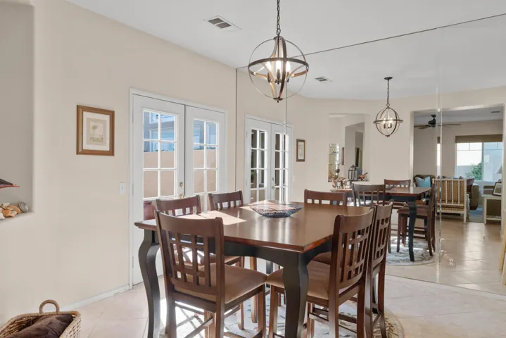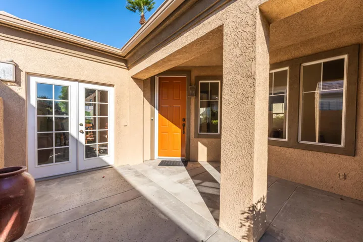 Everything Falls into Place with This Immaculate Desert Retreat!Spectacular Resort Property Move-In ReadyNo compromises here–this turnkey property has been thoughtfully upgraded and meticulously maintained over the years, with over $60,000 in quality improvements. The result? A truly move-in-ready home that offers comfort, style, and unbeatable views.Perched above the #4 green of the El Cielo course, this home has breathtaking views of the San Jacinto Mountain range–a premium view that sets it apart. A spacious concrete patio invites you to relax or entertain, surrounded by extensive landscaping enhancements including a tranquil fountain, decorative rockwork, mature plantings, and elegant outdoor lighting. Bonus: a quality patio set and cushions are included (though not pictured).At the front, a private courtyard entry provides added seclusion. Inside, the open-concept living area captures all the views and has easy access to the outdoors. The bright, updated kitchen features many updated appliances and connects to a dining area with patio access.Down the light-filled hallway, you’ll find two spacious bedrooms with new furniture and flooring. The primary suite includes a fully remodeled spa-style bath, a walk-in closet, and generous cabinet space. The second bath has also been stylishly upgraded. A full-size laundry room is conveniently located near the bedrooms, and a two-car garage completes the package.Offered fully furnished and in spotless condition, this home is the perfect blend of quality, location, and value.Located within Desert Princess–a full-service, year-round country club community–residents enjoy an unmatched lifestyle. Amenities include a 27-hole golf course (pay-as-you-play or membership options), clubhouse dining, a fitness center, tennis, pickleball, social clubs, and more. (More details in the neighborhood information page.) This is resort living at its finest!