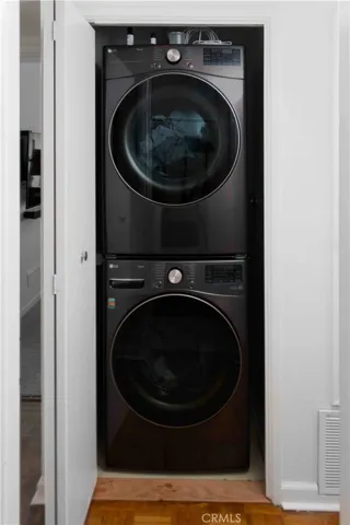 Enjoy the convenience of in-unit laundry and your own private two-car tandem garage located just steps away. The garage is currently set up as a fitness area with additional space for parking and offers an abundance of storage.