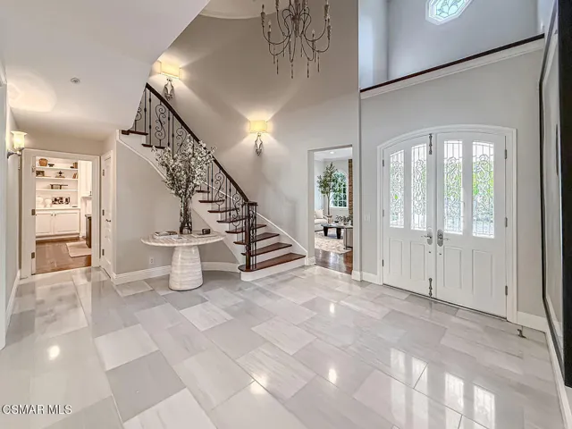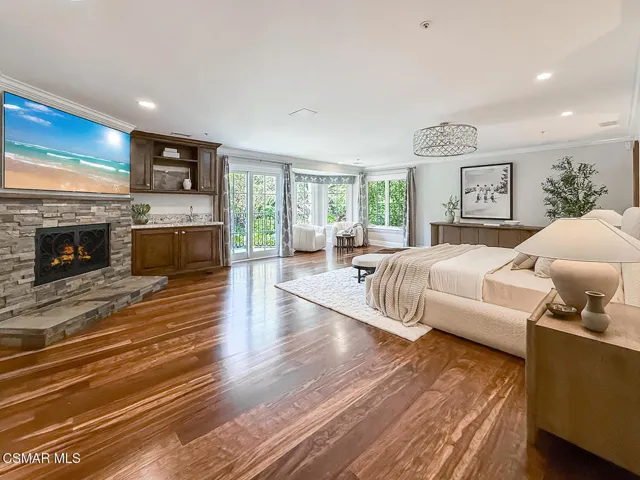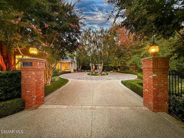 Modern Elegance Meets Resort Living in North Ranch Country Club EstatesEnter through your enchanting wooden bridge into your private tree-lined motor court, where every detail of this estate reflects sophistication, comfort, and resort-style living in one of Westlake Village’s most prestigious guard-gated communities.Set on a premier 2.15-acre lot, this stunning custom residence blends timeless architecture with thoughtful modern upgrades, including a brand-new concrete roof, brand new Bosch HVAC systems with new ducting, new gutters, refinished hardwood floors, fresh interior paint, upgraded primary bathroom with bonus space great for yoga, exercise equipment or meditation and a restructured primary balcony.Inside, a grand marble foyer opens to light-filled living spaces with cathedral ceilings, stacked-stone fireplaces, and custom craftsmanship throughout. The chef’s kitchen is a true centerpiece with Wolf and Subzero appliances, an oversized quartz island, and an elegant butler’s pantry as well as oversized walk in pantry. The primary suite is a serene retreat complete with a fireplace, sitting area, spa-inspired bath, and an expansive walk-in closet.The private backyard is a true resort escape featuring a custom cabana with full outdoor kitchen, BBQ, Viking fridges, brick pizza oven, and stone fireplace. Enjoy the resort-style pool and spa with cascading waterfall, multiple fire pits, and a lighted sport court perfect for tennis, pickleball, basketball, and more. The grounds also offer flat lawns, an enclosed garden, an outdoor shower, and fully owned solar panels, surrounded by lush, mature landscaping.Every detail of this home reflects sophistication, comfort, and resort-style living in one of Westlake Village’s most prestigious guard-gated communities.